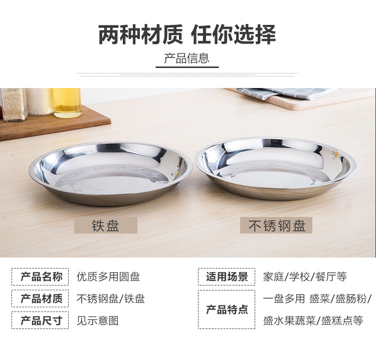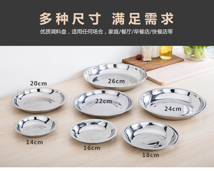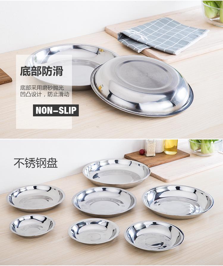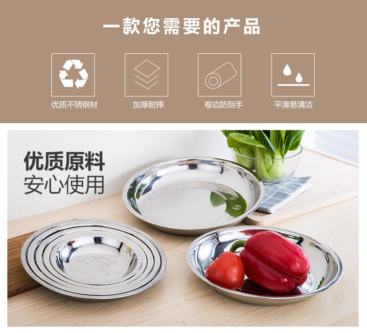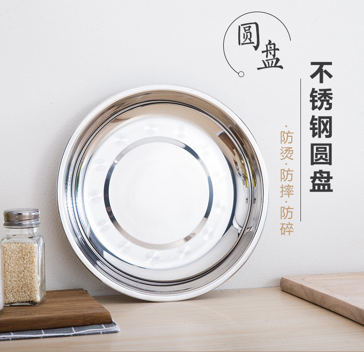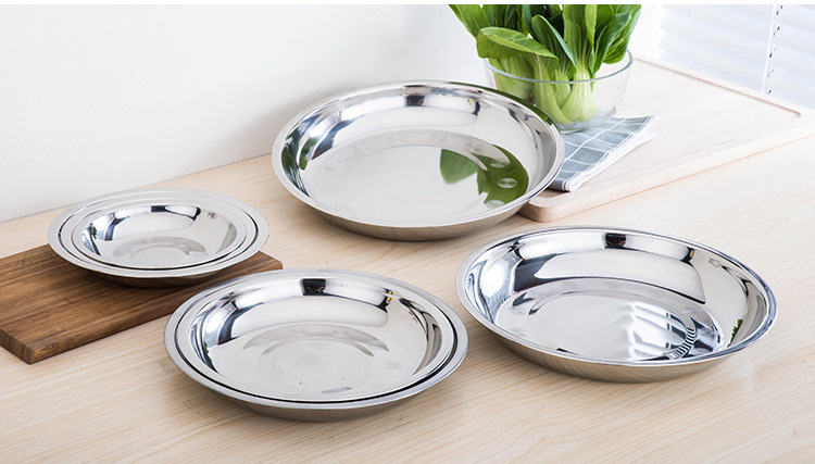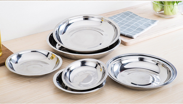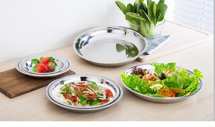 스테인레스 스틸 원형 접시, 두꺼운 얕은 접시, 가정용 접시, 평평한 접시, 냉면 접시, 생선 접시, 밥 접시