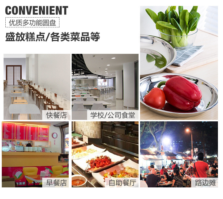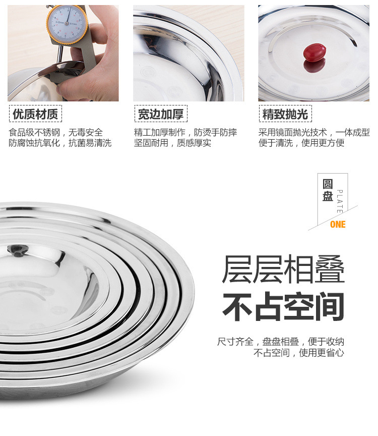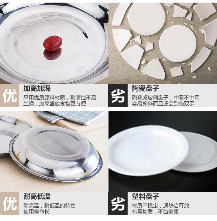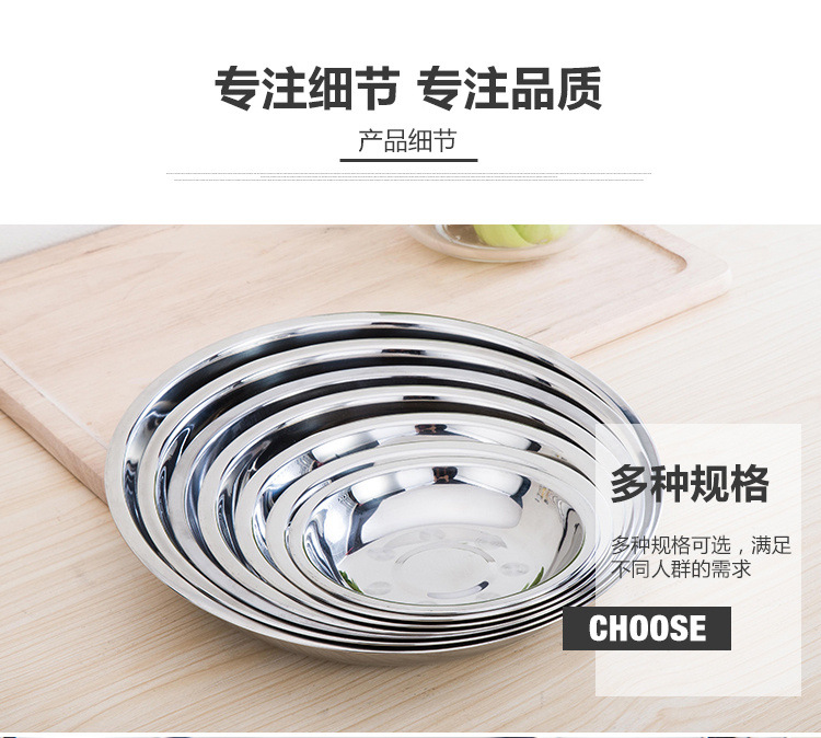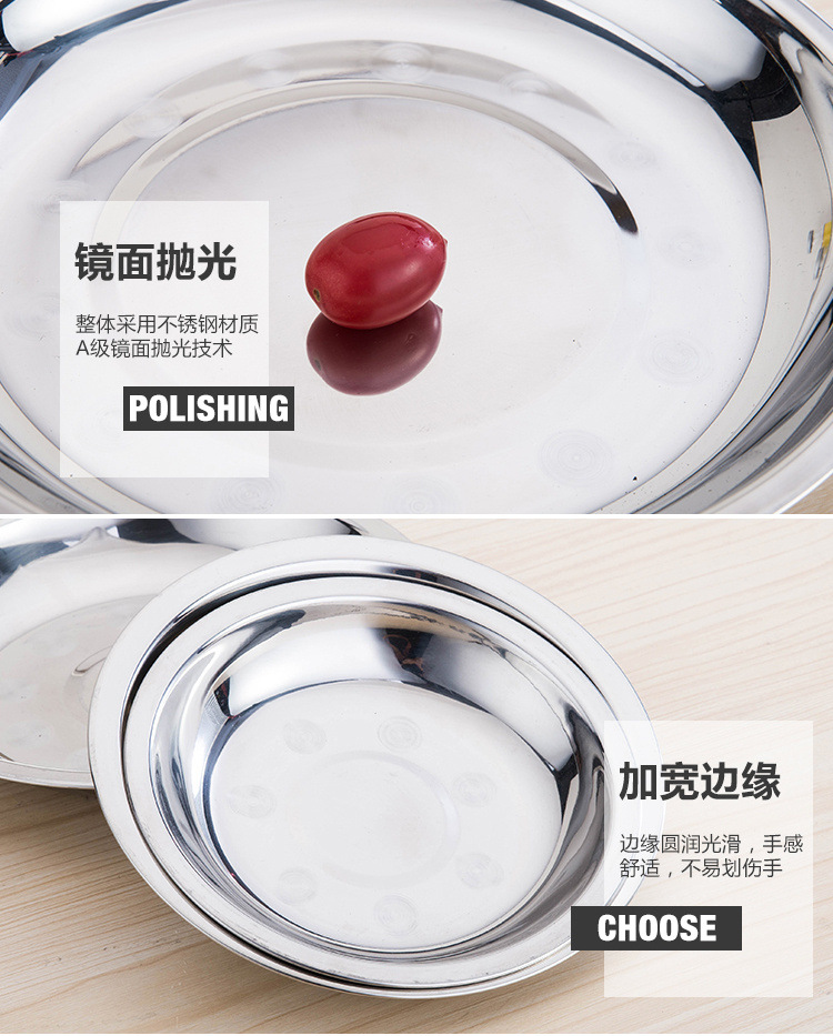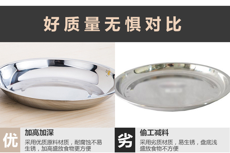 스테인레스 스틸 원형 접시, 두꺼운 얕은 접시, 가정용 접시, 평평한 접시, 냉면 접시, 생선 접시, 밥 접시