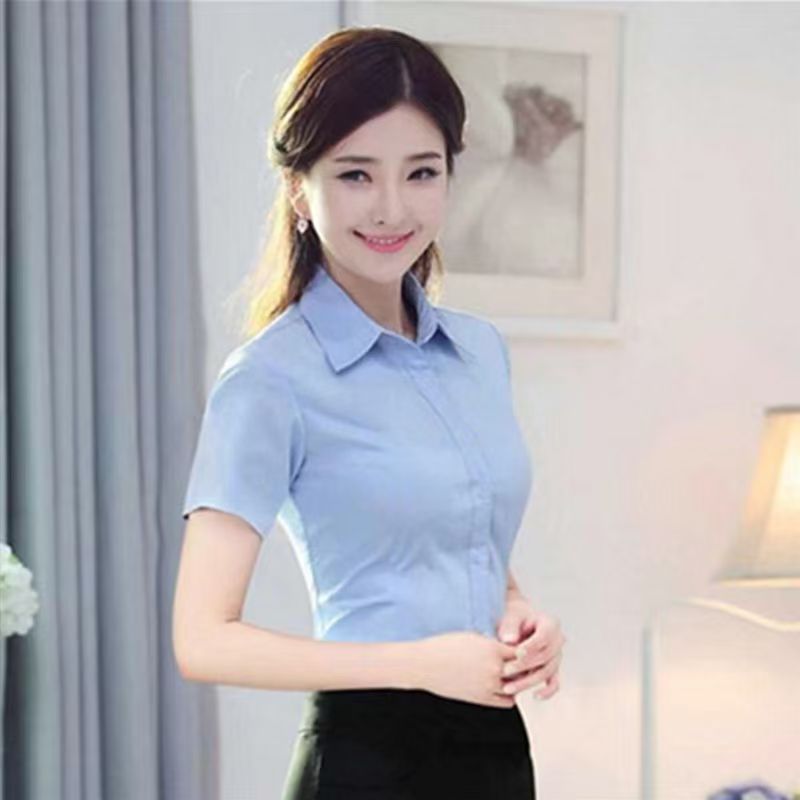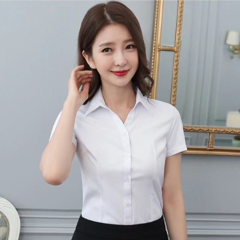 새로운 고급 POIO 브랜드 주름 방지 전문 면접 정장 기성복 다림질 필요 없는 반팔 셔츠 여성 비즈니스 셔츠스토어 가기