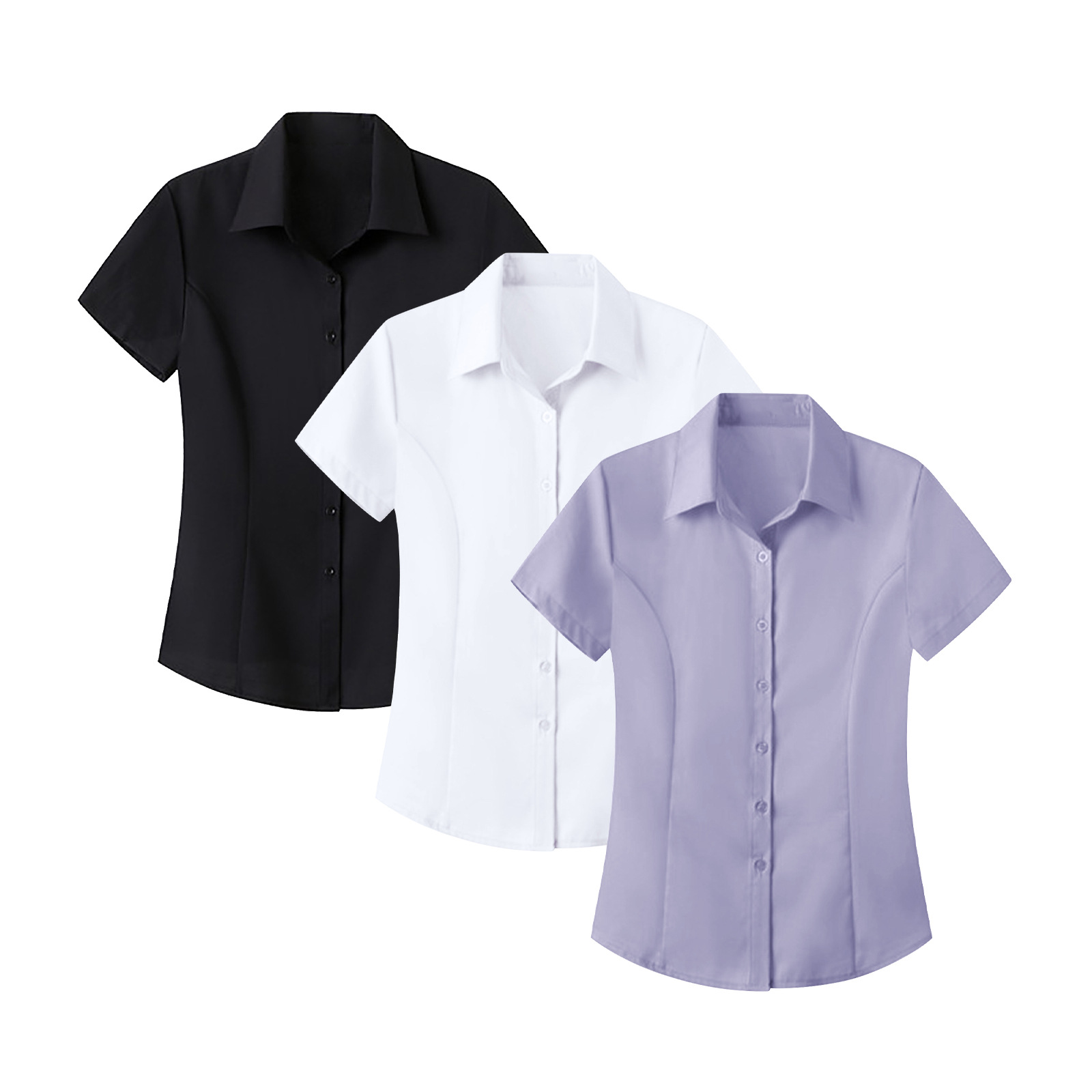 새로운 고급 POIO 브랜드 주름 방지 전문 면접 정장 기성복 다림질 필요 없는 반팔 셔츠 여성 비즈니스 셔츠