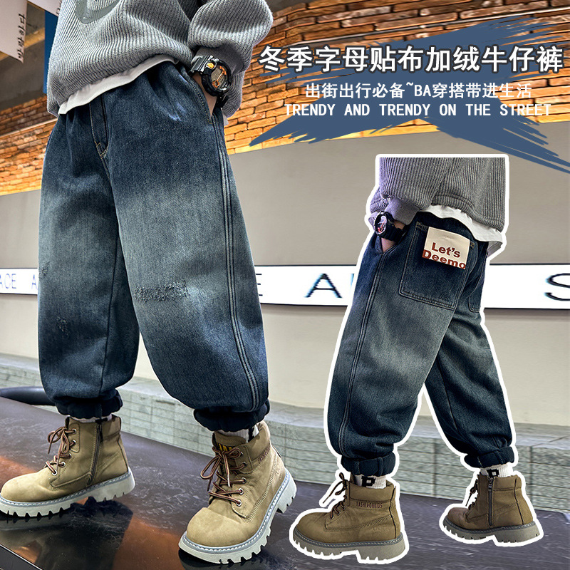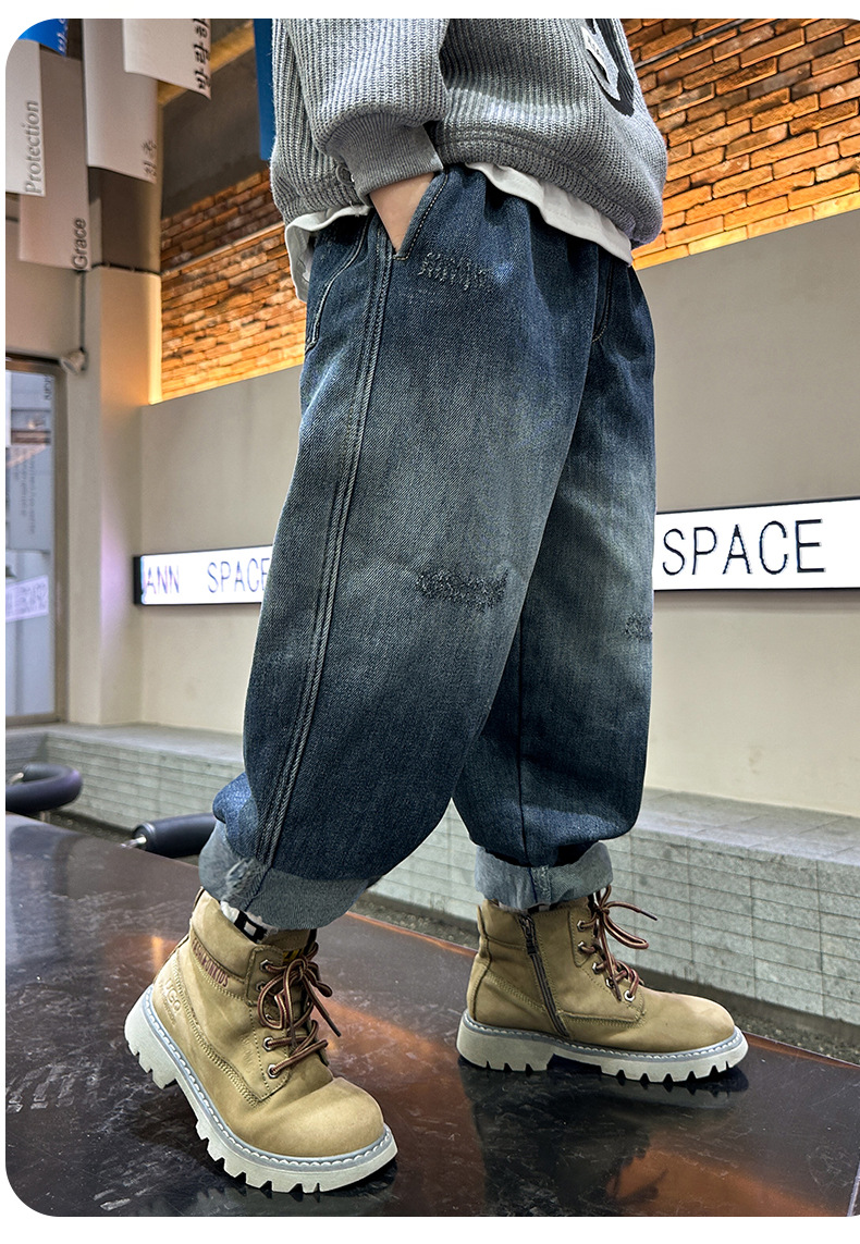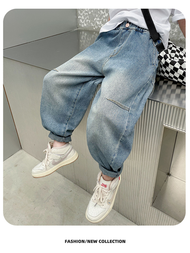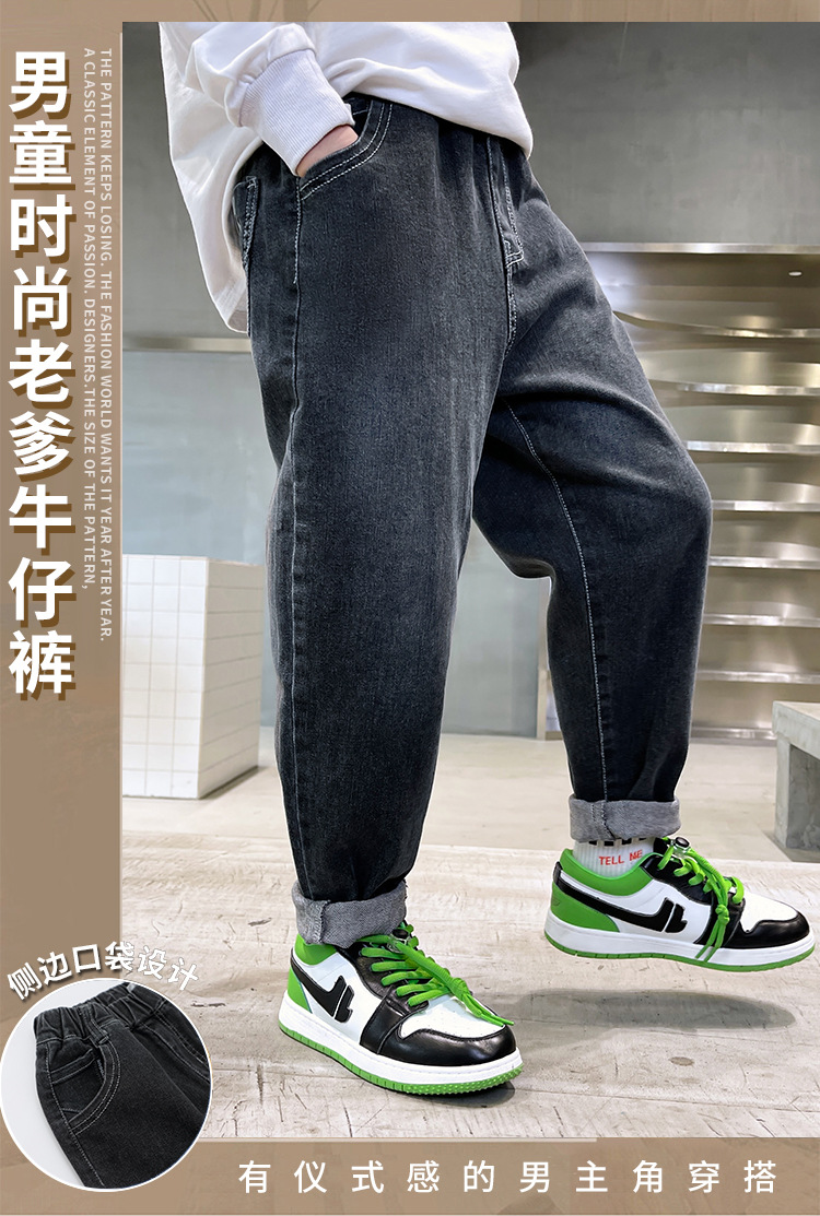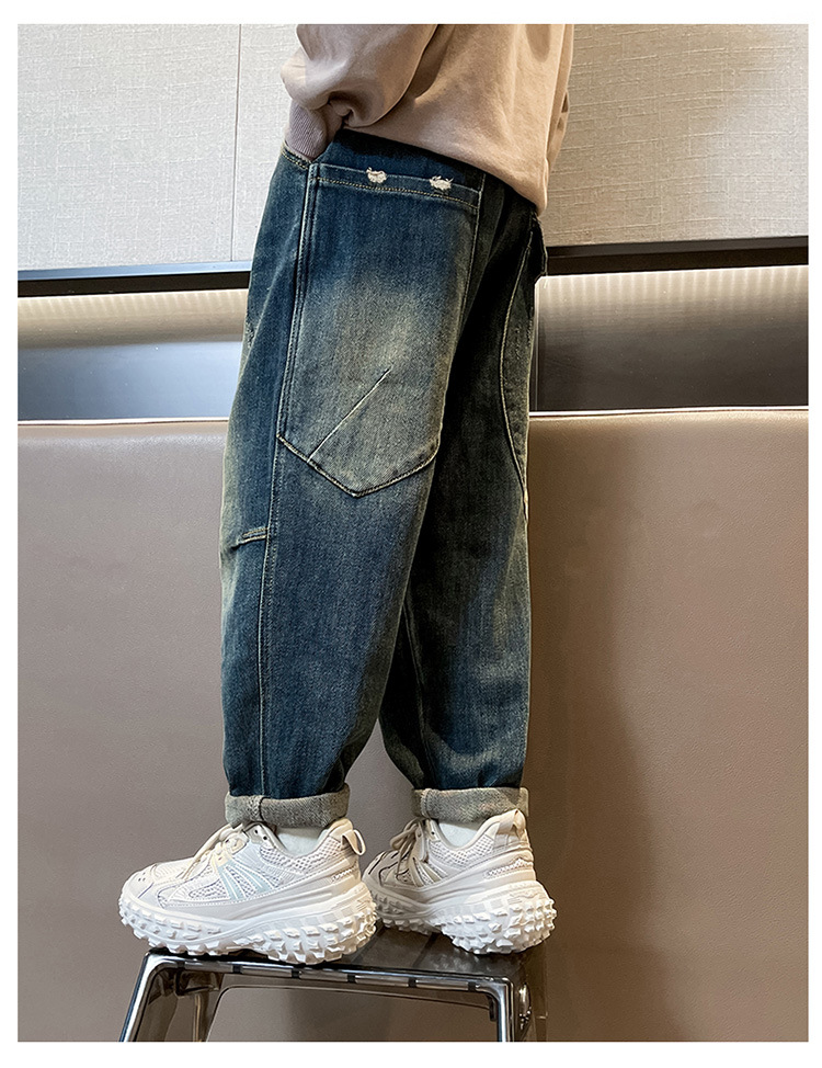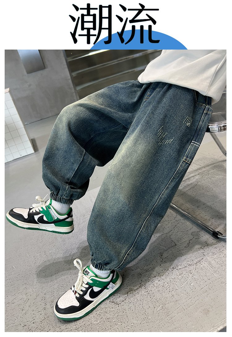 아동복 소년 봄, 가을 유행 청바지 2025 새로운 중대형 아동 봄 의류 소년의 멋진 한국 바지스토어 가기