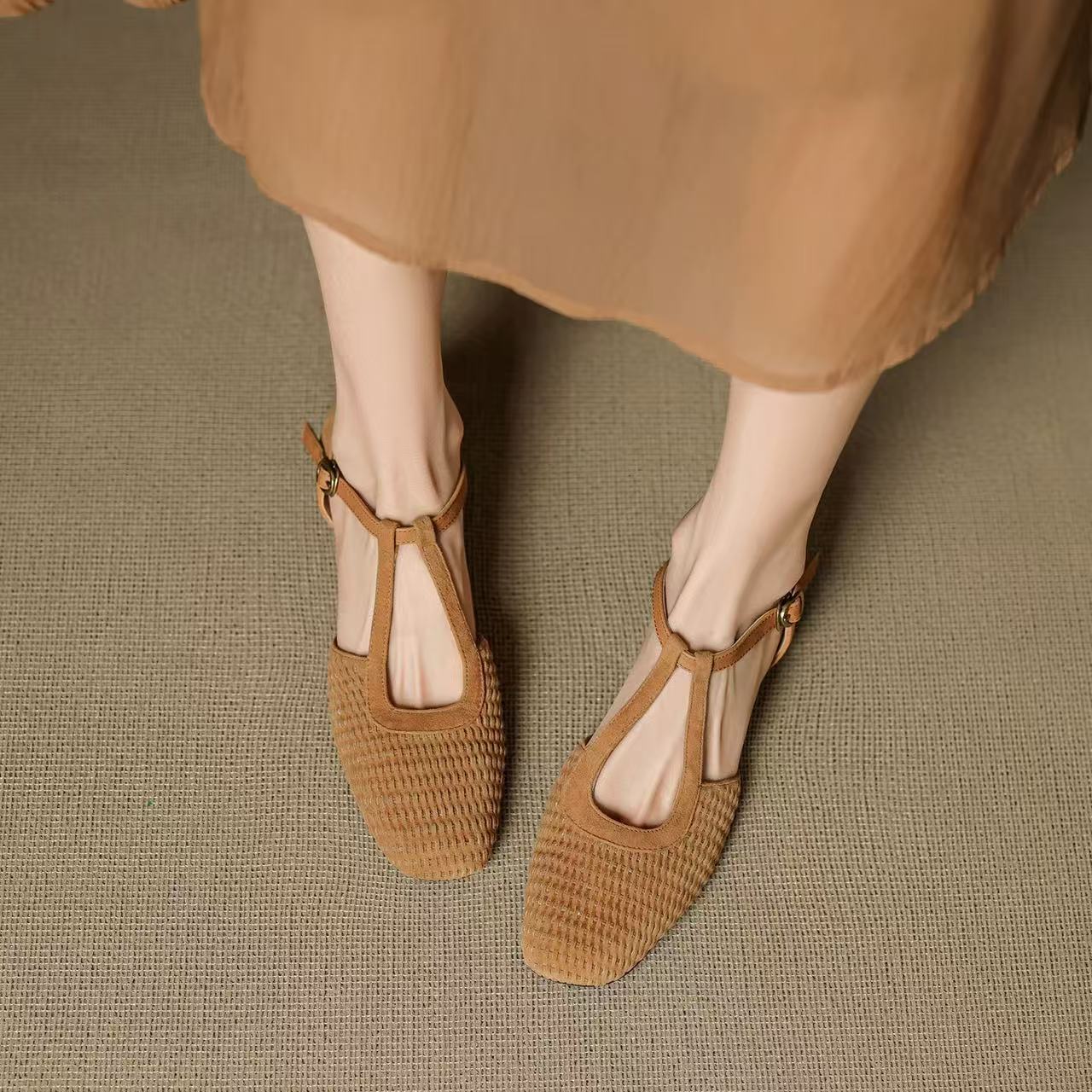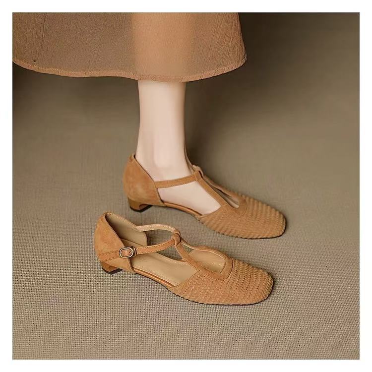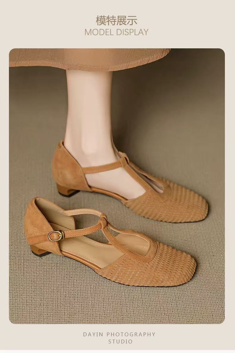 여성용 복고풍 슈퍼 아름다운 로마 샌들, 스커트, 중공 메리 제인 두꺼운 굽 발가락 신발스토어 가기