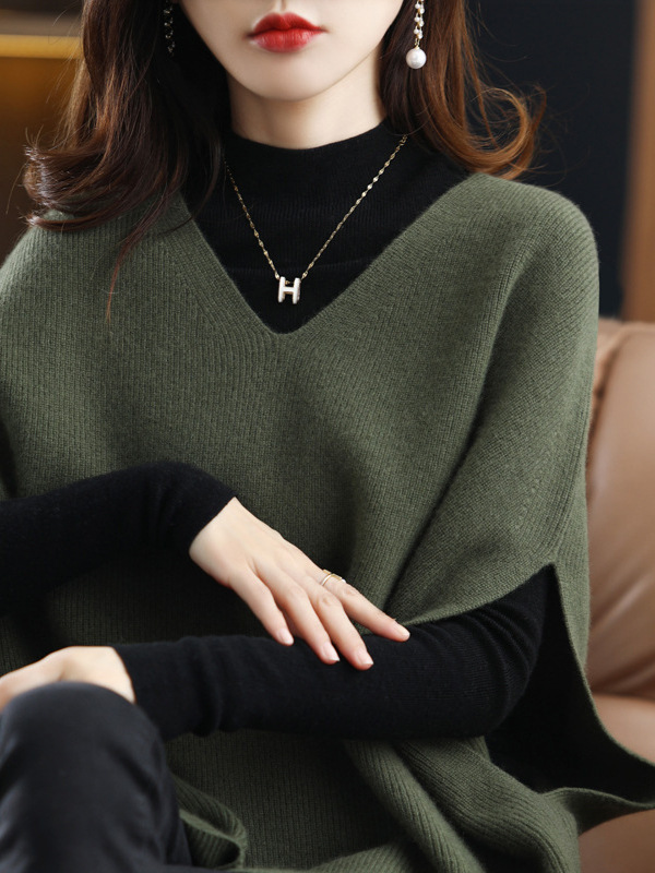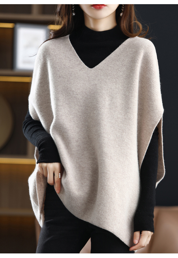 니트 조끼 솔리드 컬러 가을 새로운 스타일 2025 여성 겉옷 느슨한 양복 조끼 v 넥 배트 슬리브 스웨터