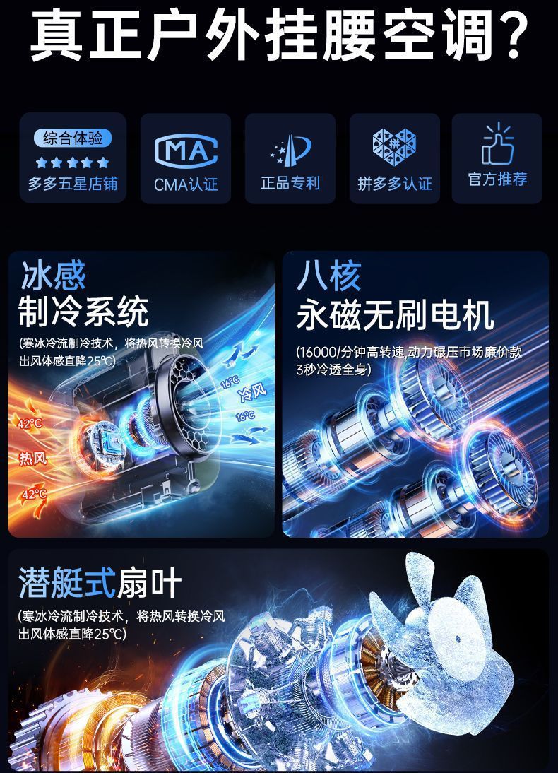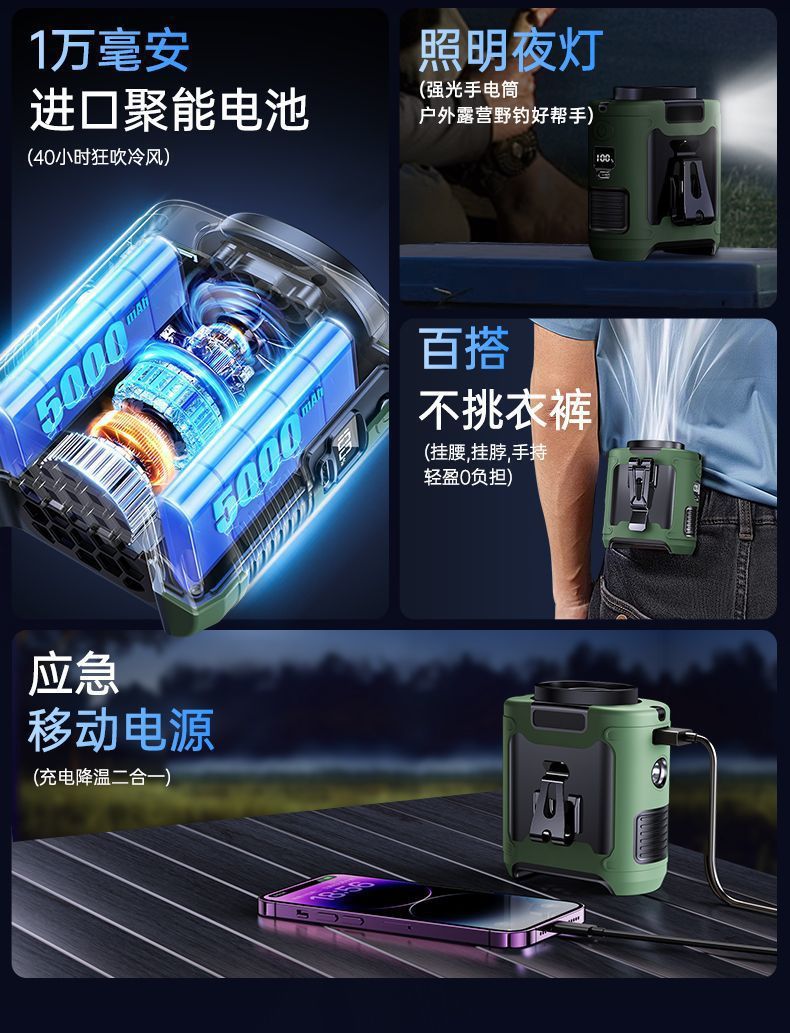 허리걸이형 선풍기, 휴대용 에어컨, 충전식, 휴대용, 고출력, 강풍, 휴대용, 야외 건설 현장 캠핑, 도매 및 배송스토어 가기