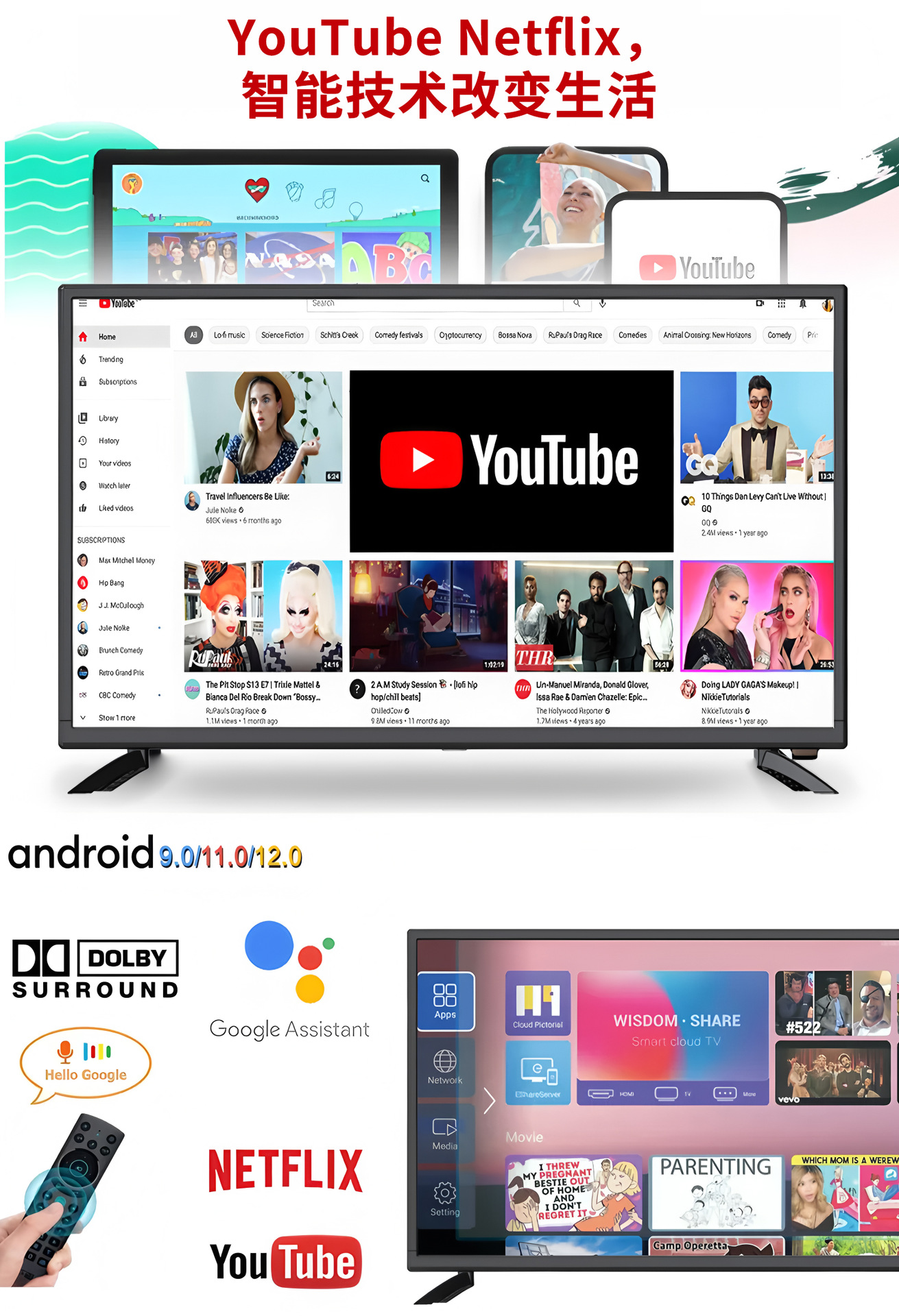 대외 무역 도매 32인치 43inch 55inch LCD TV 75inch 초박형 스마트 안드로이드 스마트 TV 국경 간스토어 가기