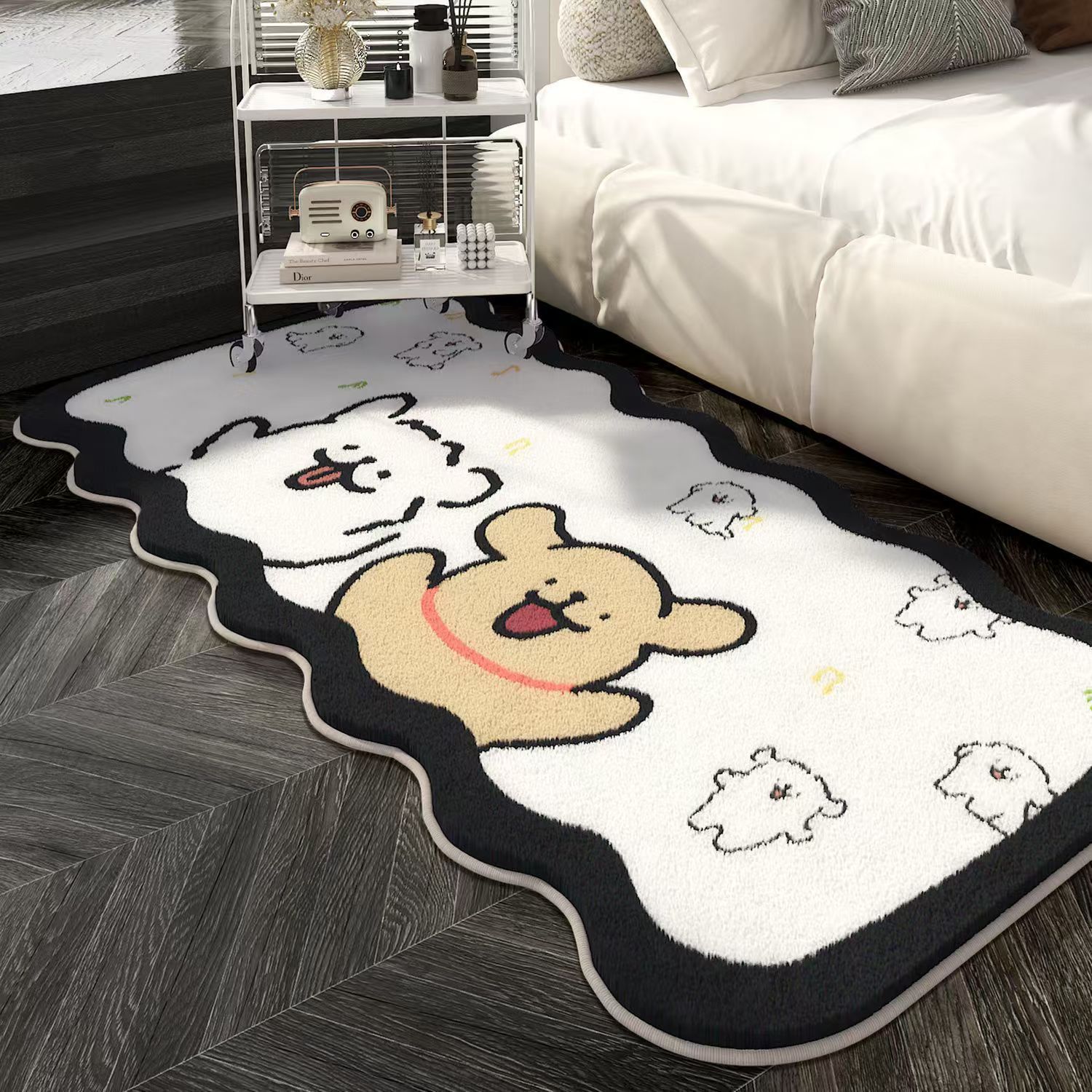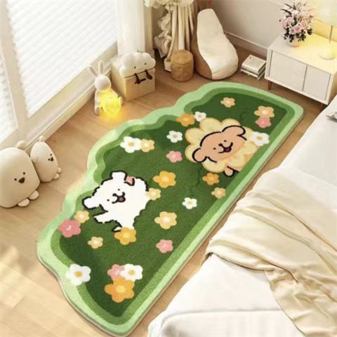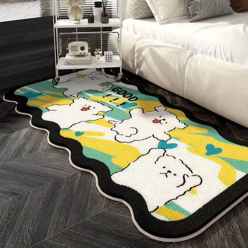 만화 라인 강아지 모조 캐시미어 카펫 침실 피부 친화적 인 쉬운 관리 침대 옆 담요 발코니 거실 장식 소파 담요