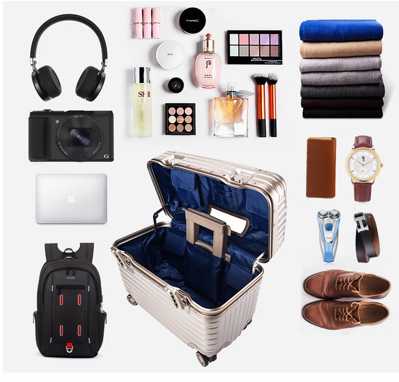 Dropshipping 18inch 캡틴 케이스 탑승 케이스 사진 장비 보관 케이스 여성용 가방 젖빛 알루미늄 프레임 도구 상자