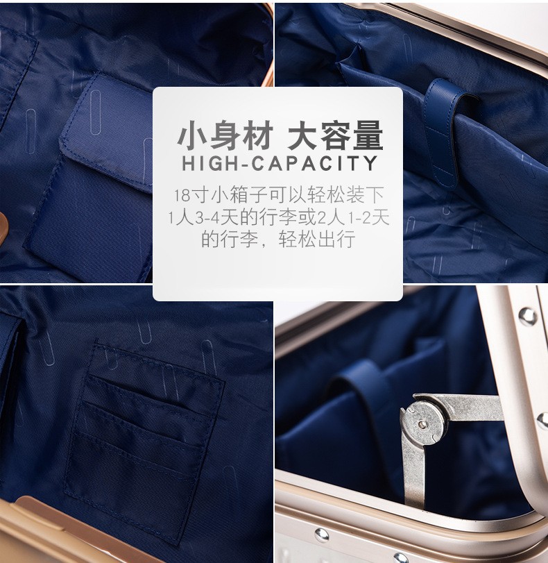 Dropshipping 18inch 캡틴 케이스 탑승 케이스 사진 장비 보관 케이스 여성용 가방 젖빛 알루미늄 프레임 도구 상자스토어 가기