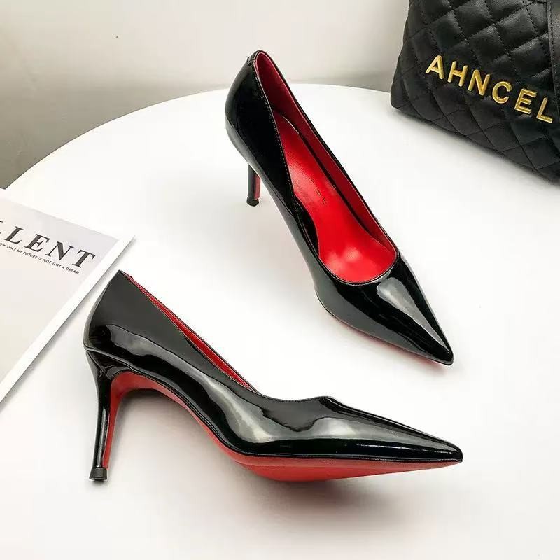 블랙 하이힐 포인티드 토 여성 스틸레토 봄, 가을 새로운 부드러운 가죽 레드 바닥 페이턴트 가죽 포인티드 토 섹시한 누드 컬러 작업 신발스토어 가기