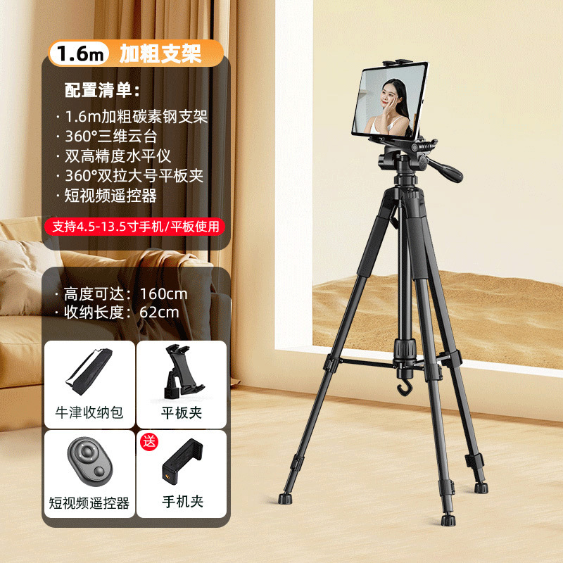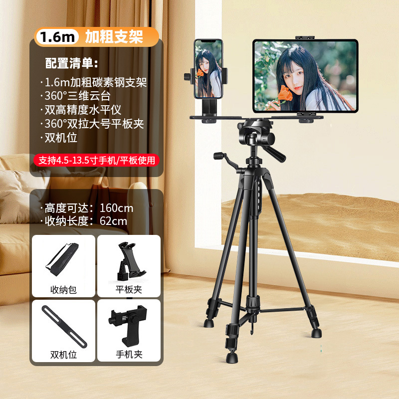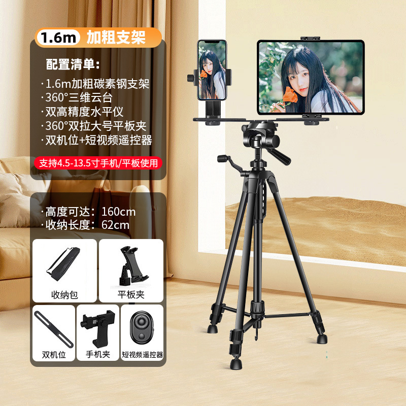 • [굵게] 1.6m 삼각대-태블릿 휴대폰 듀얼 카메라 + 무료 보관 가방