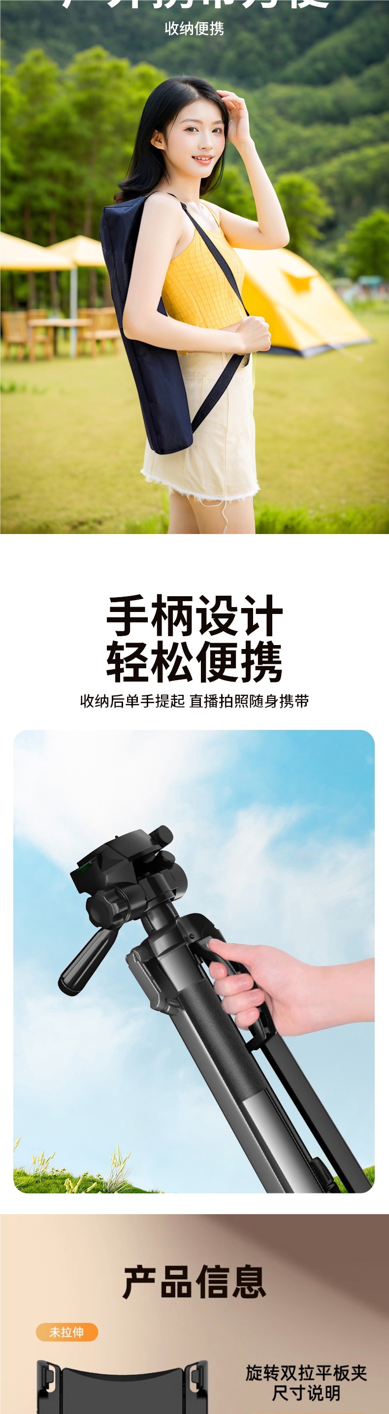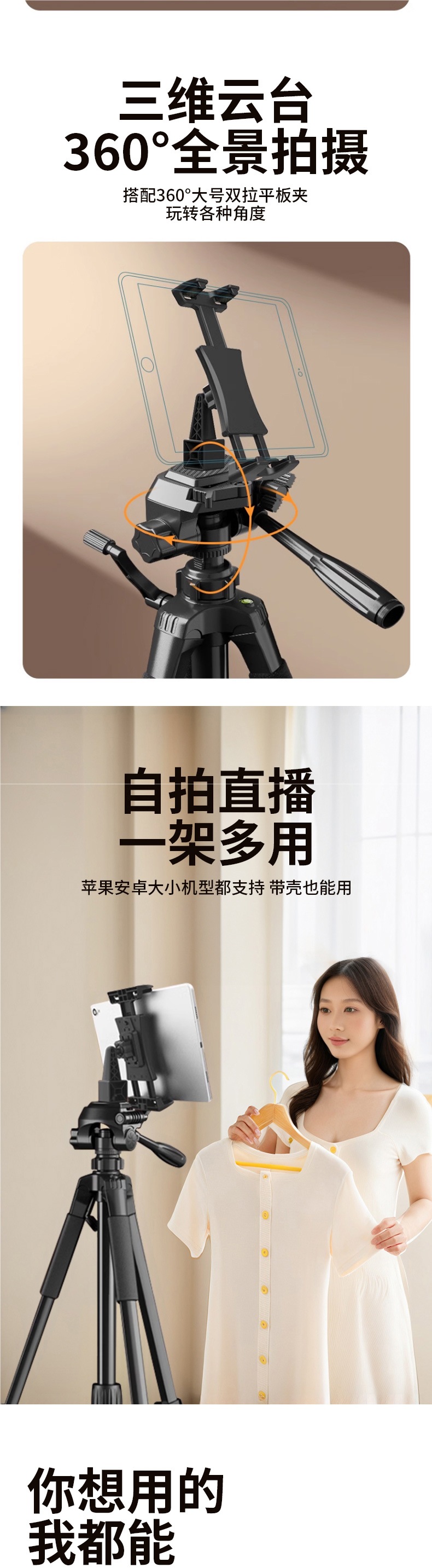• [굵게] 1.6m 삼각대 - 360도 대형 태블릿 클립 + 셀카 + 무료 보관 가방