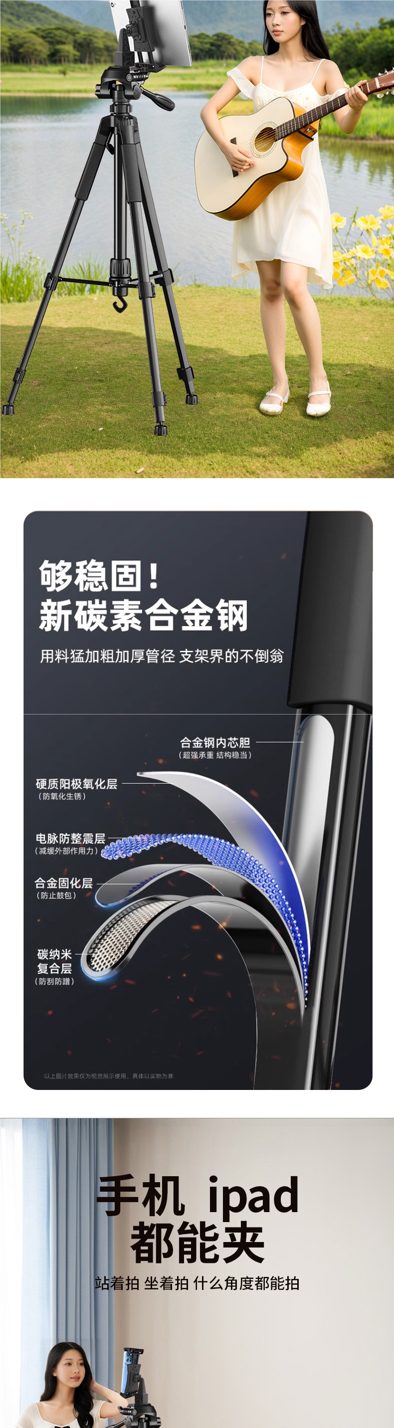 • [굵게] 1.7m 삼각대-태블릿 휴대폰 듀얼 카메라 + 무료 보관 가방