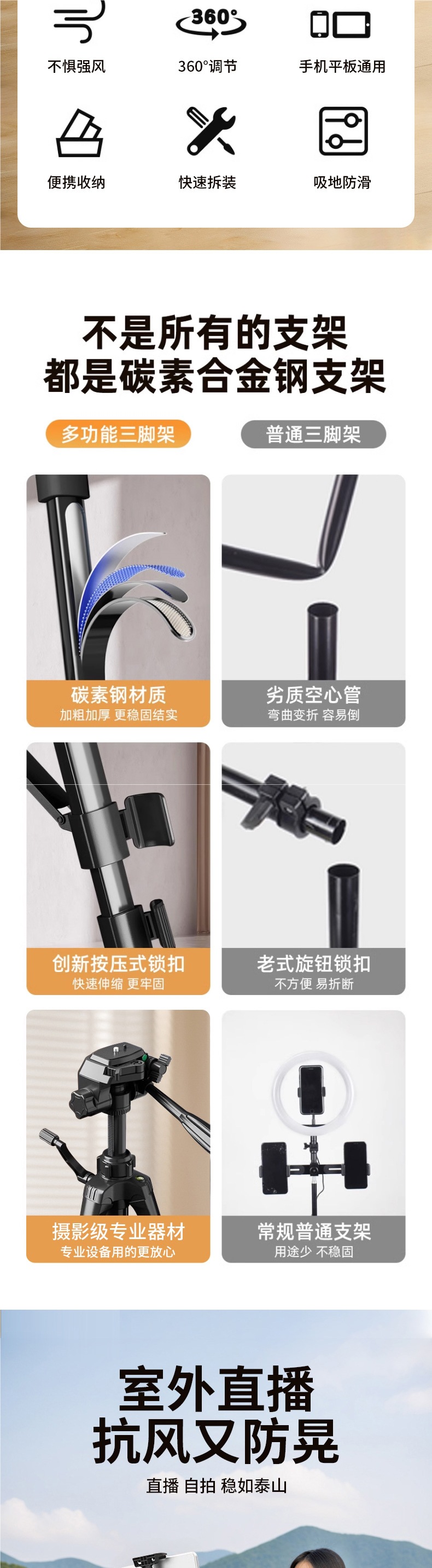 휴대폰 태블릿 컴퓨터 태블릿 라이브 방송 스탠드 바닥에 조절 가능한 삼각대 그림 촬영