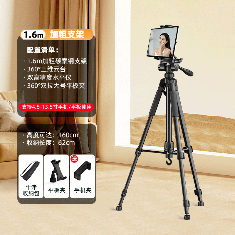 • [굵게] 1.6m 삼각대 - 360도 대형 태블릿 클립 + 무료 보관 가방