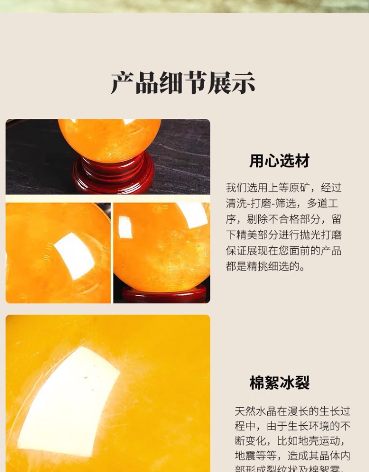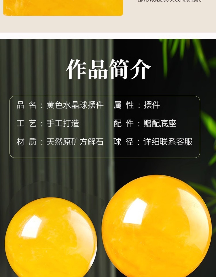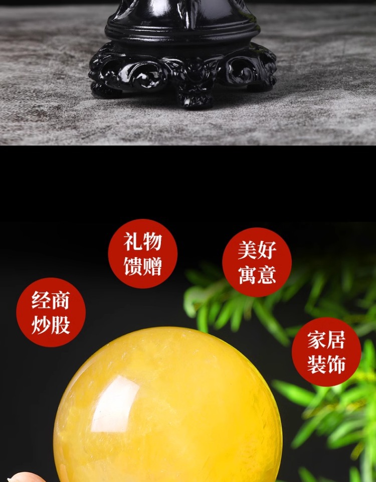 천연 노란색 수정구슬 장식품, 실제 원석, 주방, 사무실, 현관, 흐르는 물 수정구슬, 천연 원석스토어 가기