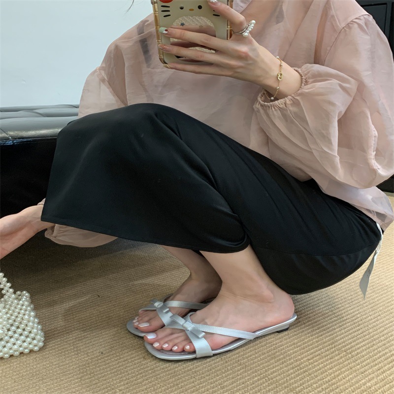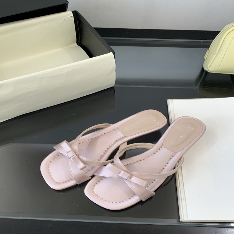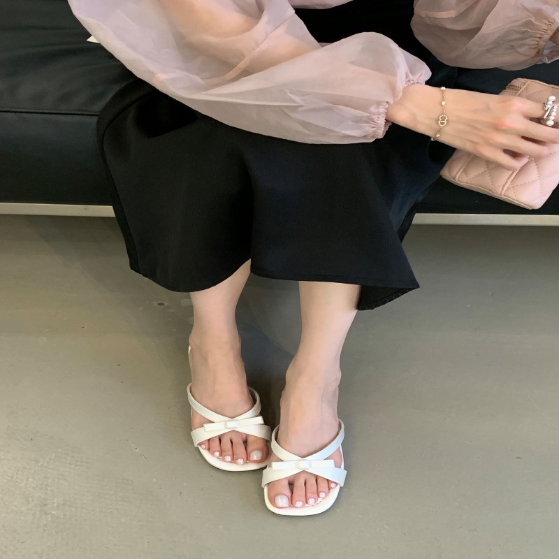 2025년 신상 여름 스타일 스커트가 있는 해변 슬리퍼, 프렌치 스퀘어 토 천연가죽 새틴 리본 오픈토 샌들 여성용스토어 가기