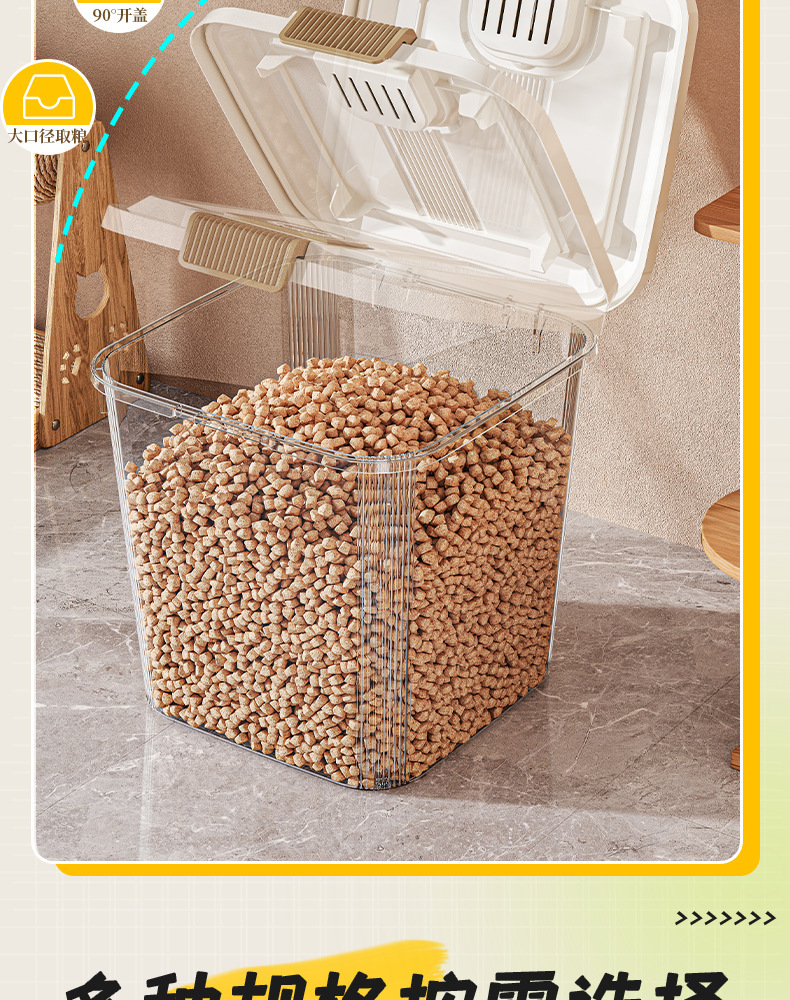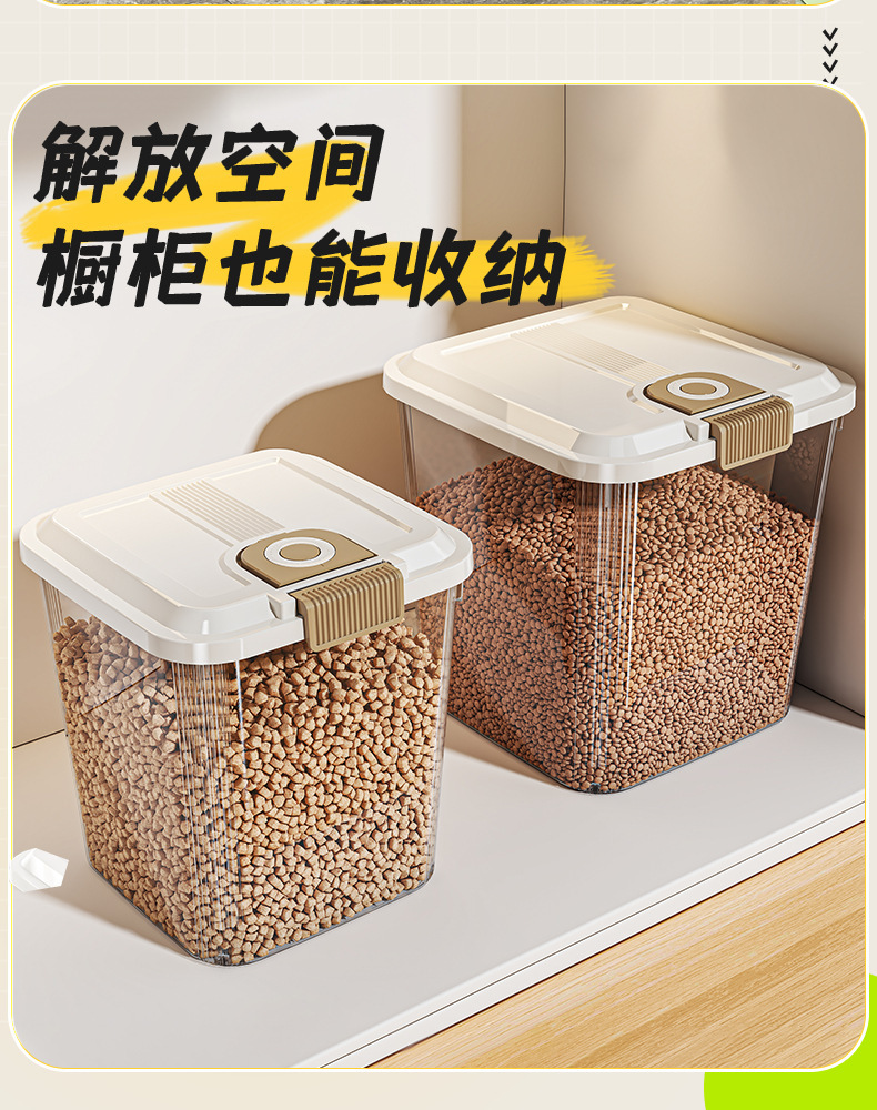 Qimeow 고양이 사료 보관통, 개 사료 밀봉 용기, 스푼이 포함된 방습 사료 보관통, 애완동물 사료 간식 동결 건조 보관함