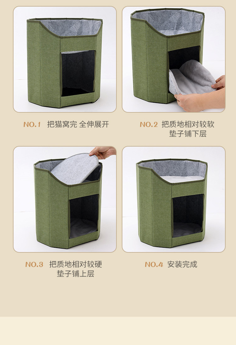 접이식 애완 동물 개집, 원형 이중층 고양이 집, 방수 옥스포드 천 고양이 개집, 사계절 범용 개 개집, 실외 및 실내 이중 용도