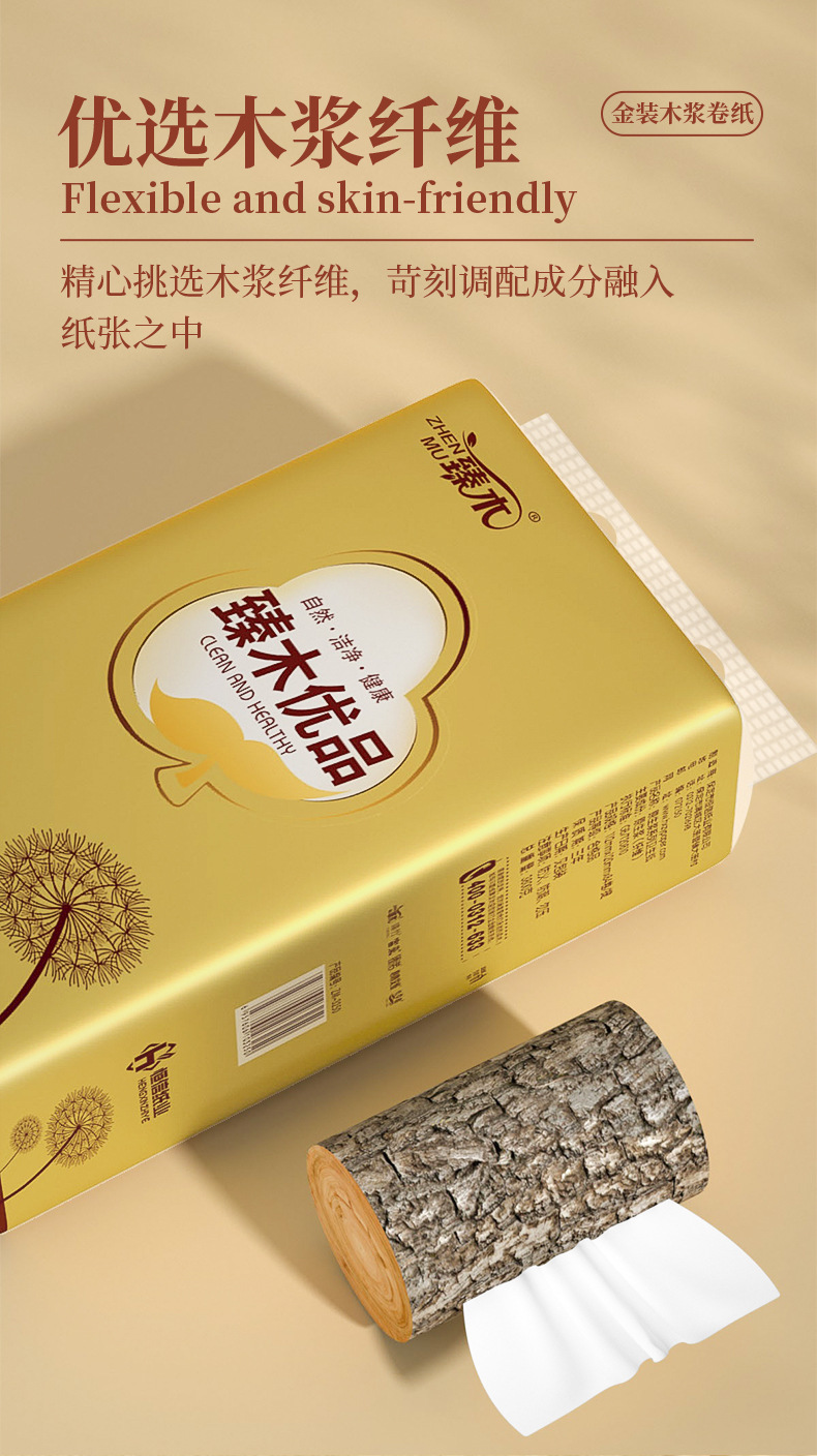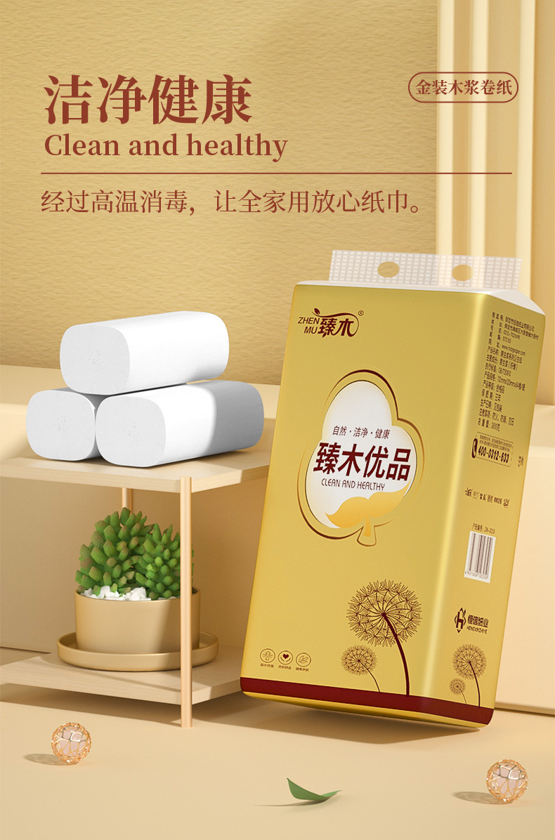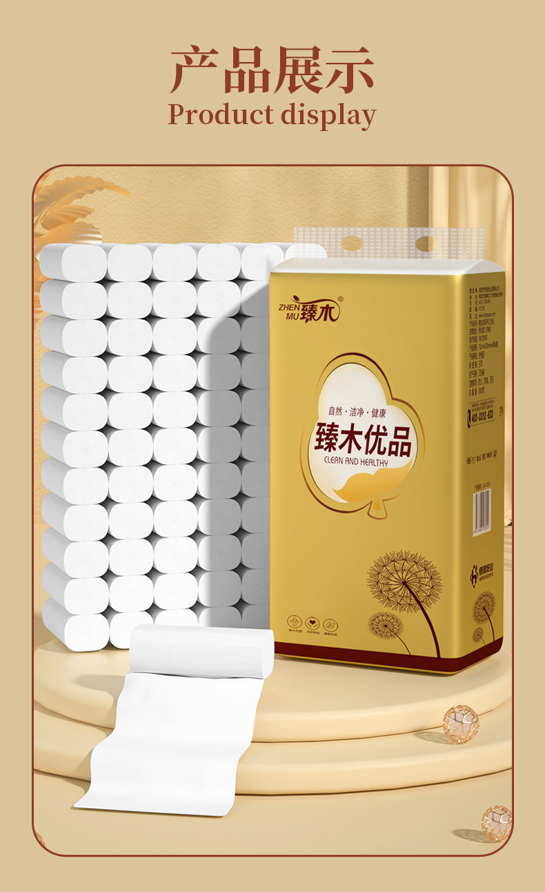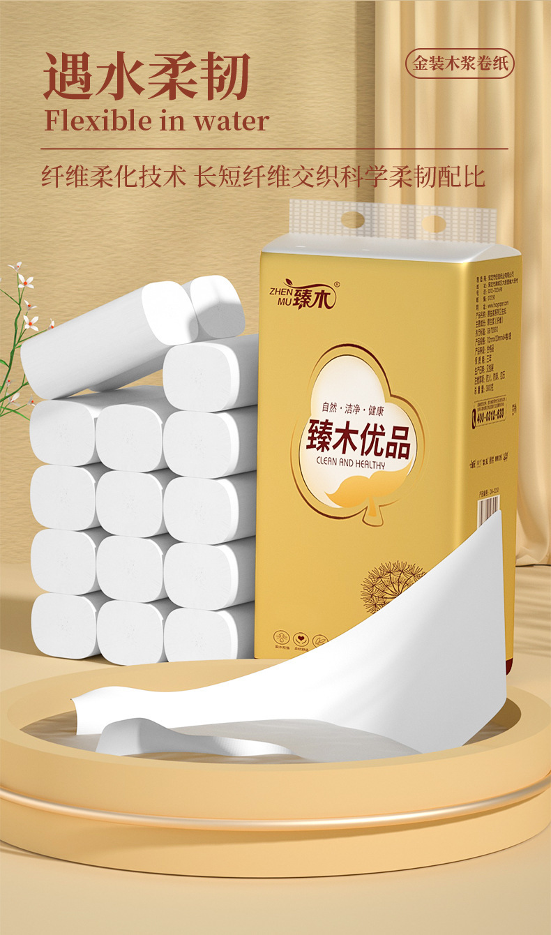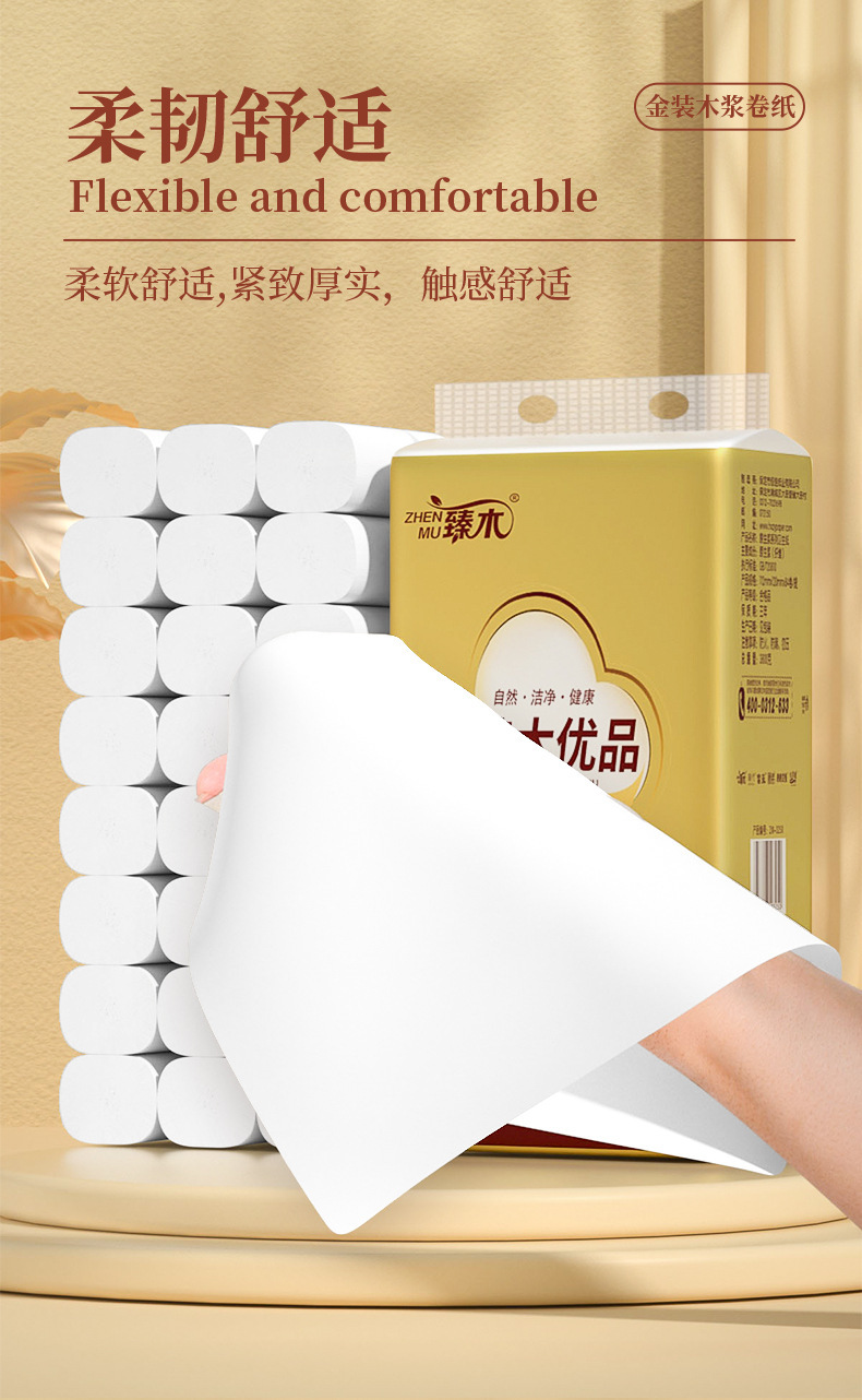 신혼 부부를 위한 독점적인 Zhenmu 롤 원시 목재 펄프 솔리드 롤 종이 가정용 전체 상자 저렴한 도매 화장지 화장지스토어 가기