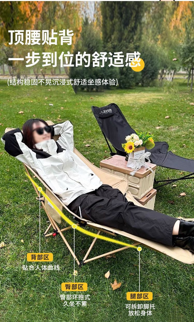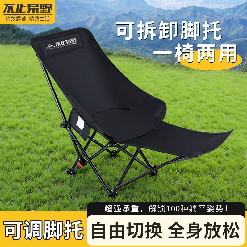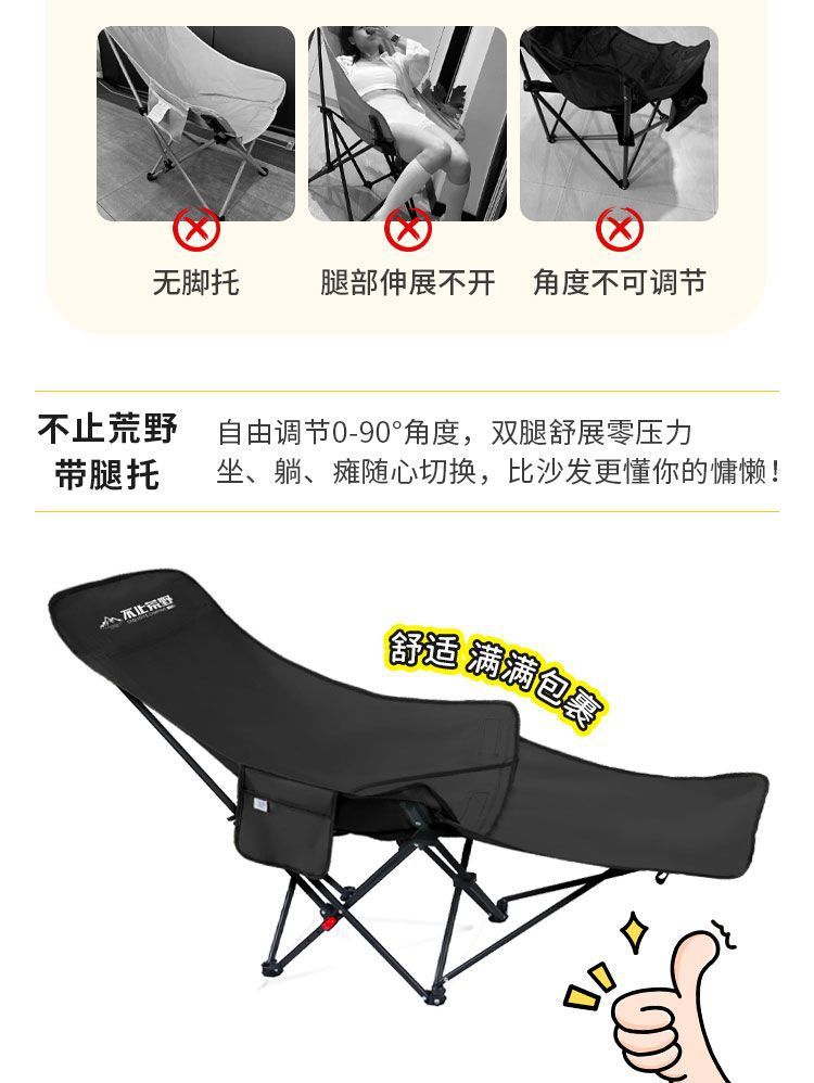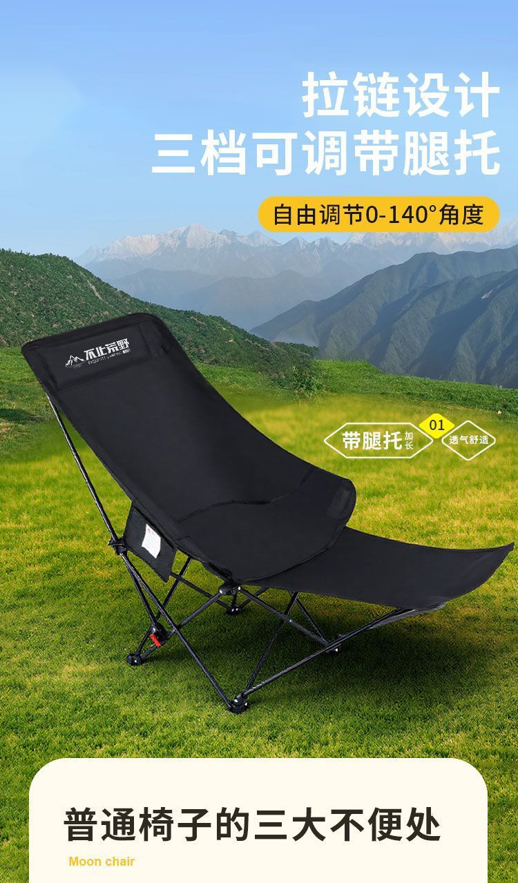 야외 접이식 의자, 달 의자, 발 받침대가 있는 3단 조절, 앉고 누워서 사용할 수 있는 야외 휴대용 고하중 피크닉 의자