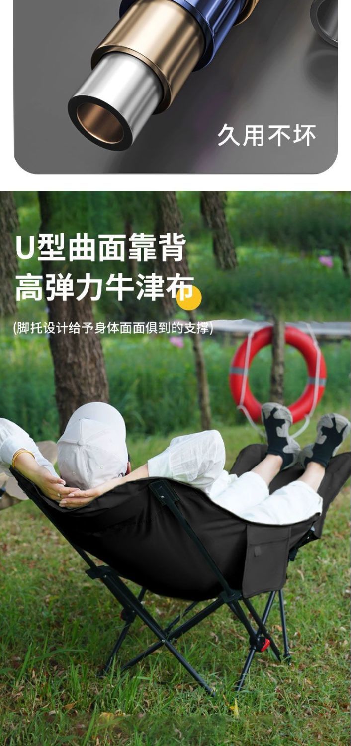 야외 접이식 의자, 달 의자, 발 받침대가 있는 3단 조절, 앉고 누워서 사용할 수 있는 야외 휴대용 고하중 피크닉 의자스토어 가기