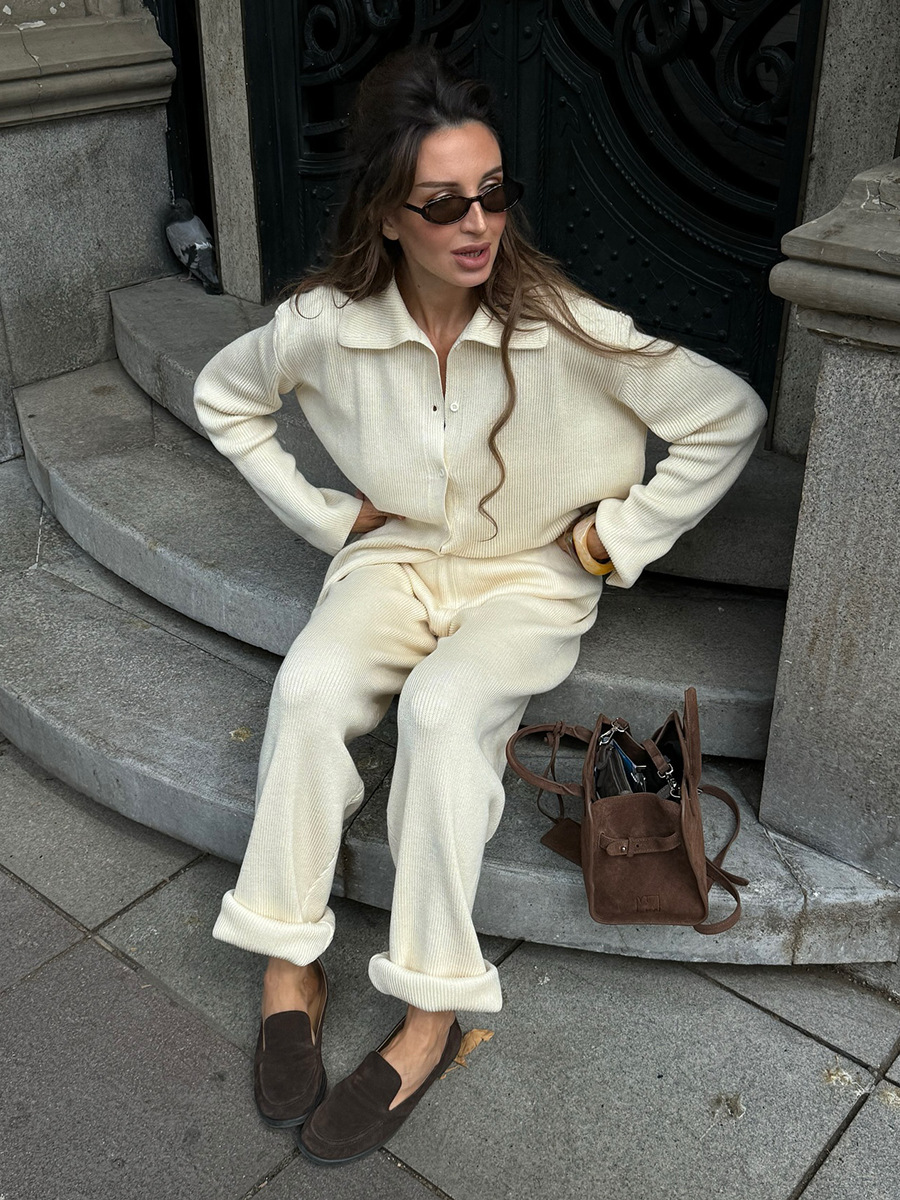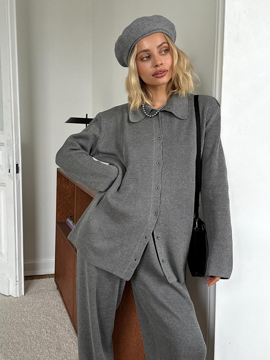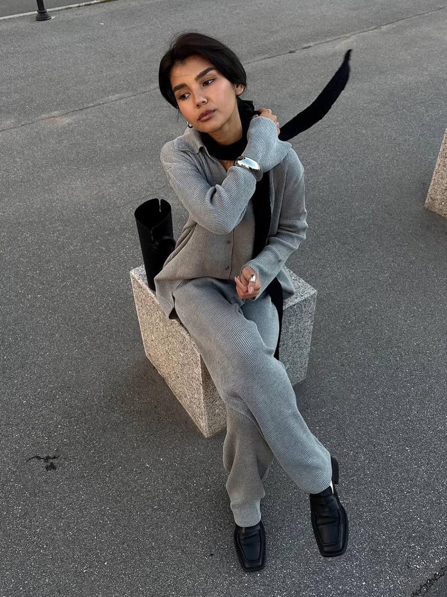 크로스보더 라펠 긴팔 니트 슈트 유럽과 미국 2025 가을 겨울 새로운 스타일 루즈한 통근 스트립 스웨터 슈트