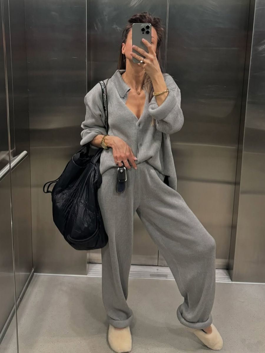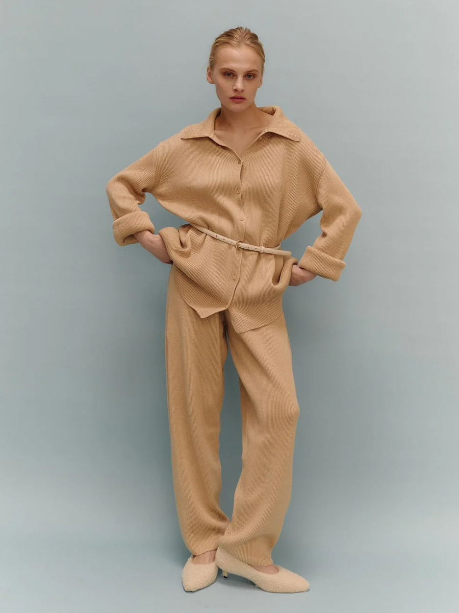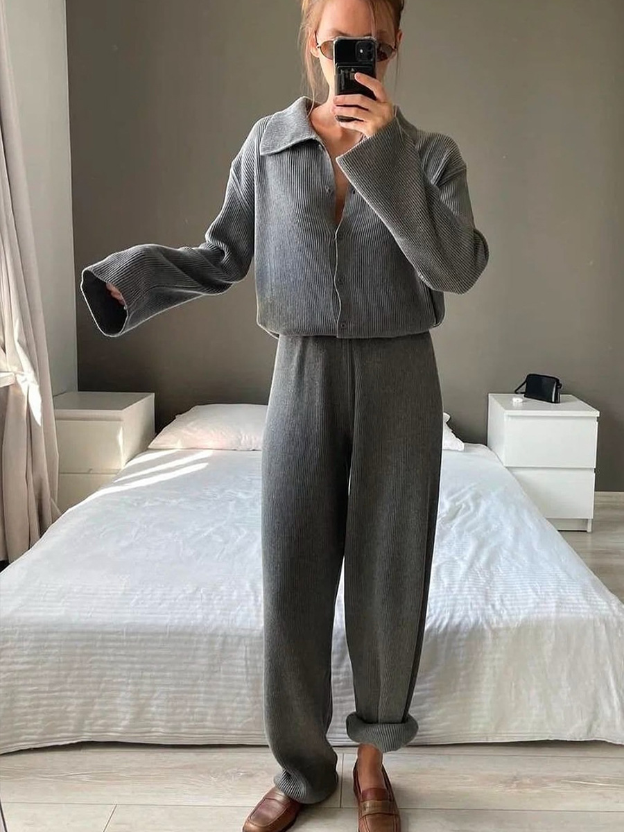 크로스보더 라펠 긴팔 니트 슈트 유럽과 미국 2025 가을 겨울 새로운 스타일 루즈한 통근 스트립 스웨터 슈트