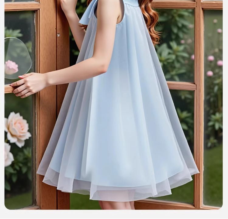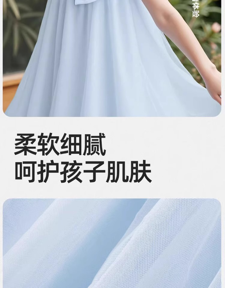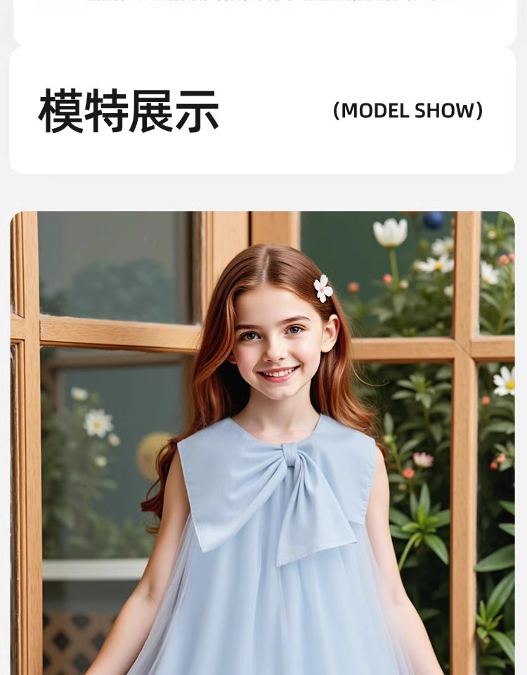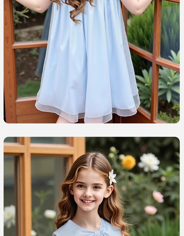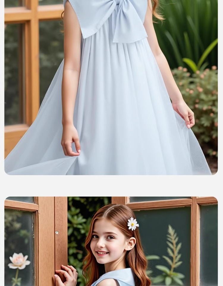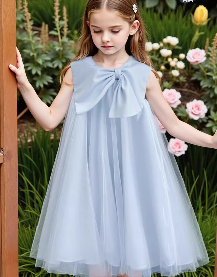 2026년 여름 여아 원피스 신상품, 중대형 아동용 리본 장식 고급 메쉬 스커트, 달콤하고 귀여운 소녀들을 위한 디자인