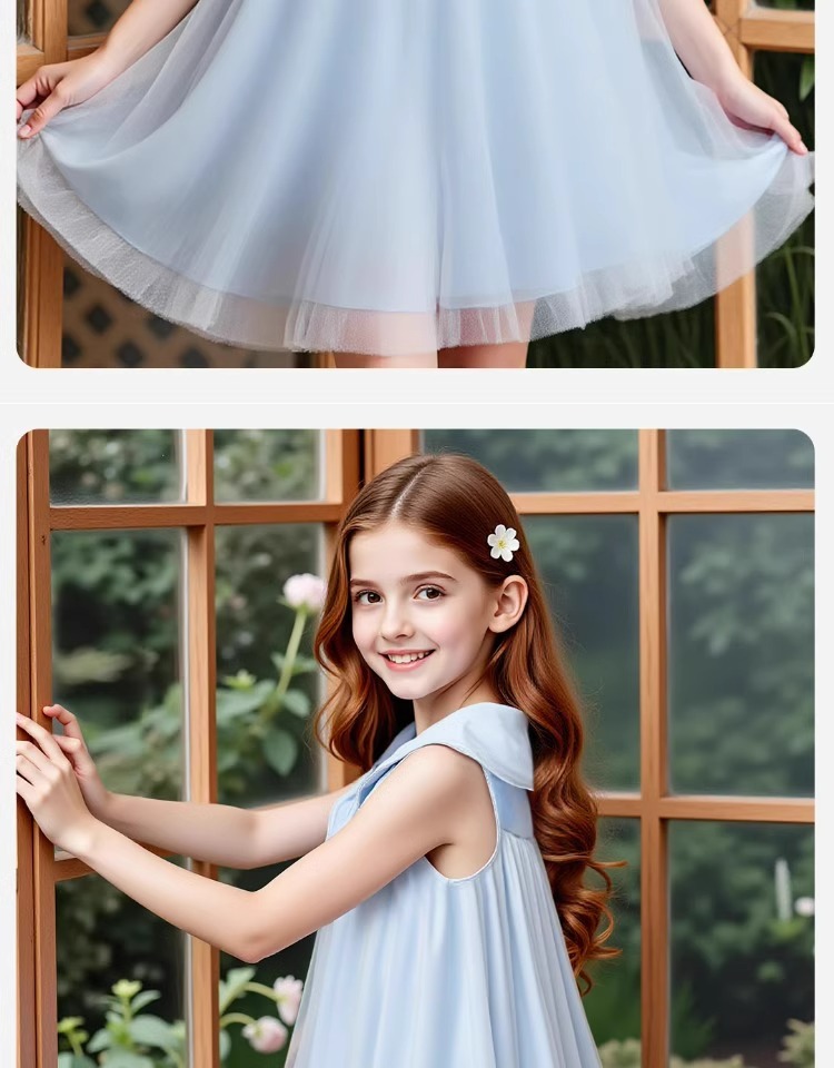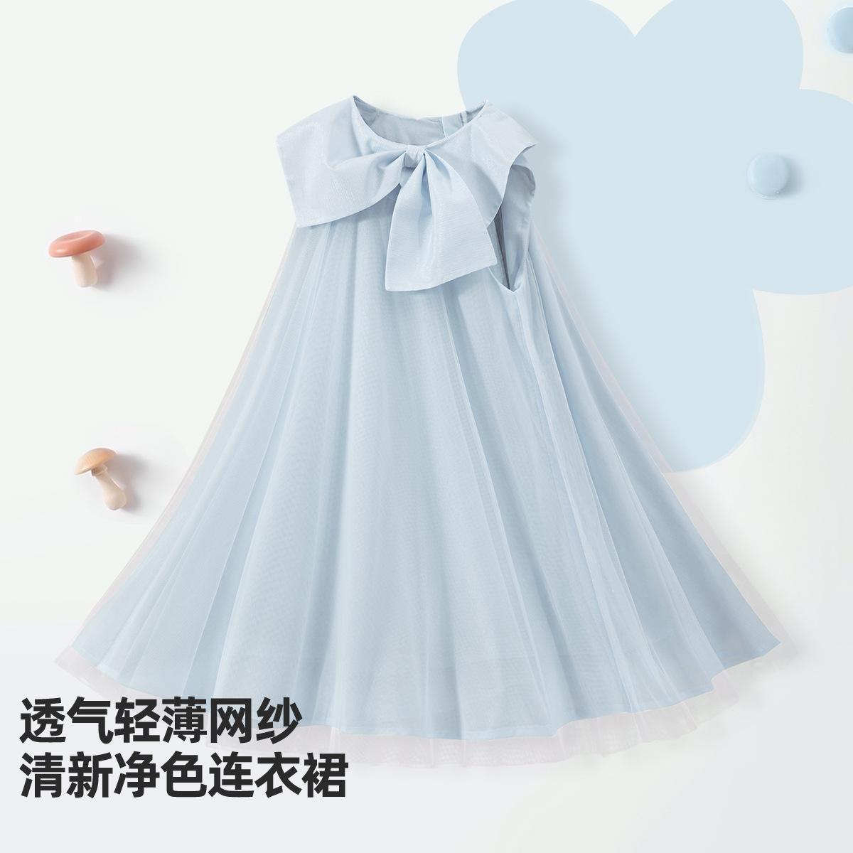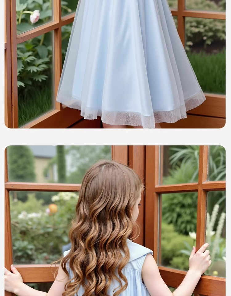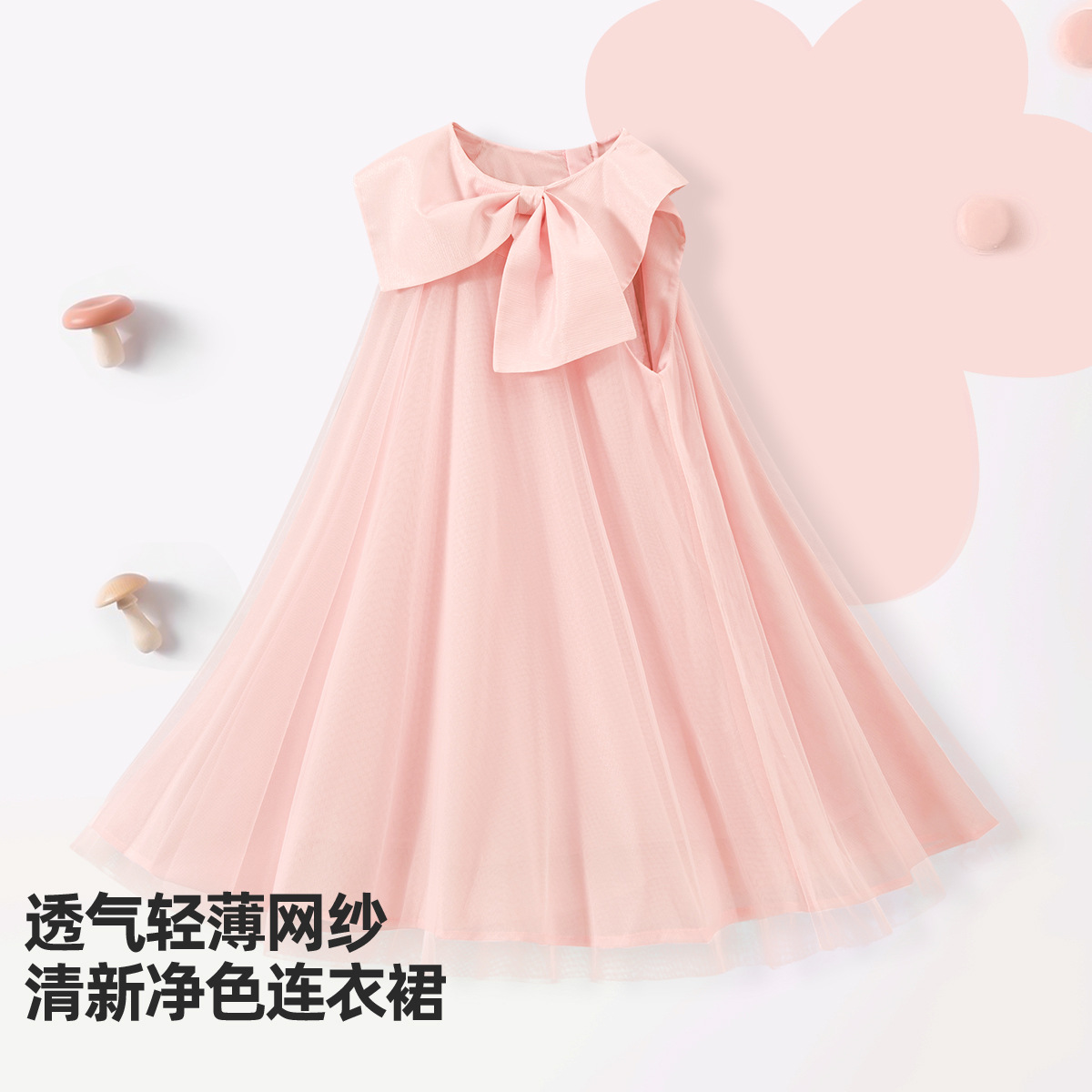 2026년 여름 여아 원피스 신상품, 중대형 아동용 리본 장식 고급 메쉬 스커트, 달콤하고 귀여운 소녀들을 위한 디자인