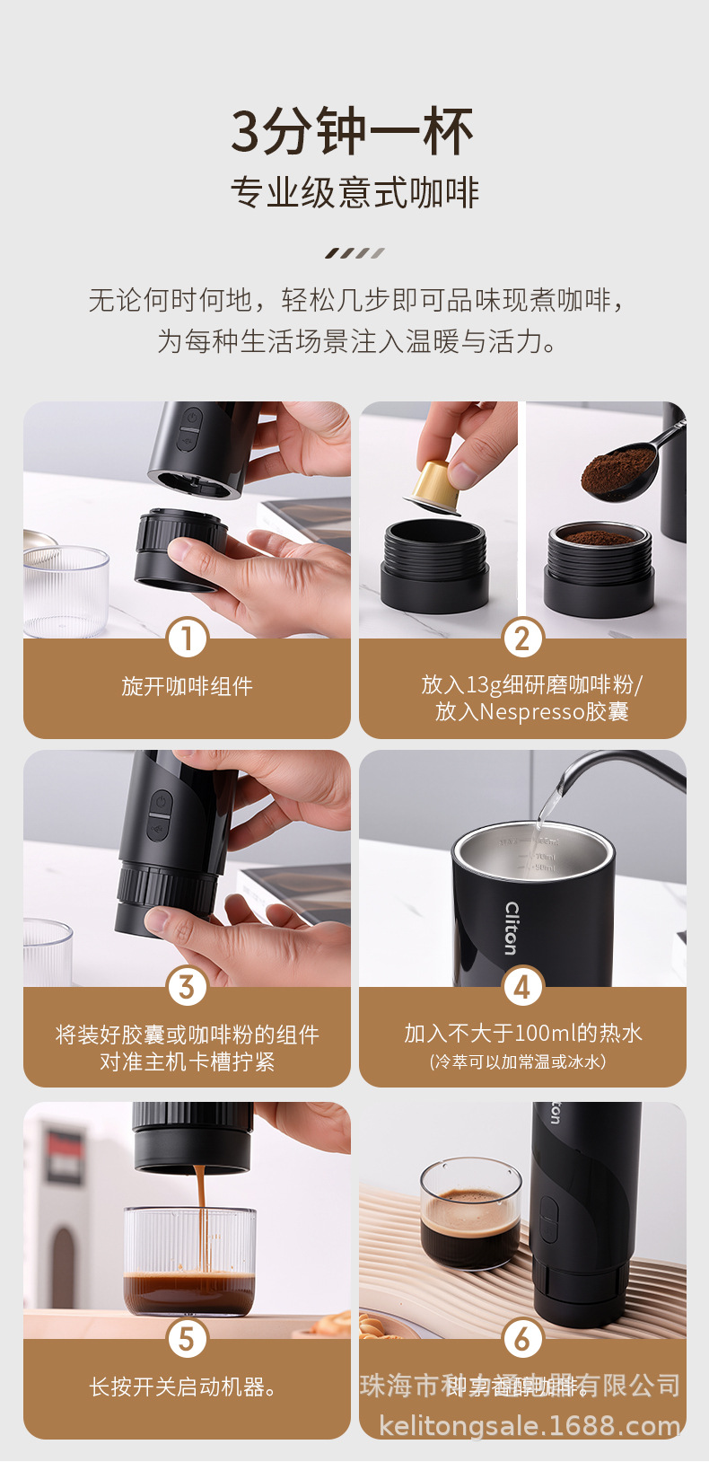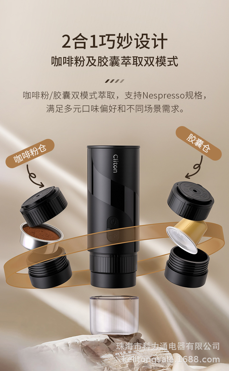 • 휴대용 커피머신 [스테인리스 물탱크 + 캡슐/파우더볼 겸용 버전]