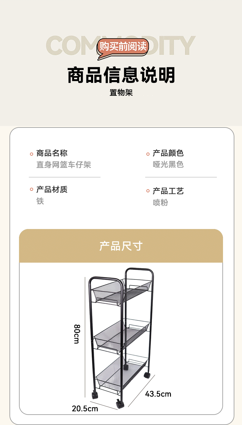 가정용 이동식 보관 카트 바닥에 놓인 다층 주방 보관 랙 트롤리 거실 다층 보관 랙스토어 가기