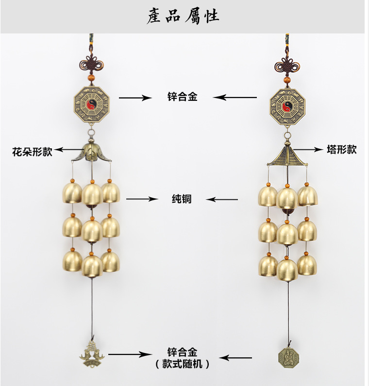 풍수탑 합금 벨, 풍경, 펜던트, 문 장식, 부와 평화를 불러일으키는 장식품, 집과 야외
