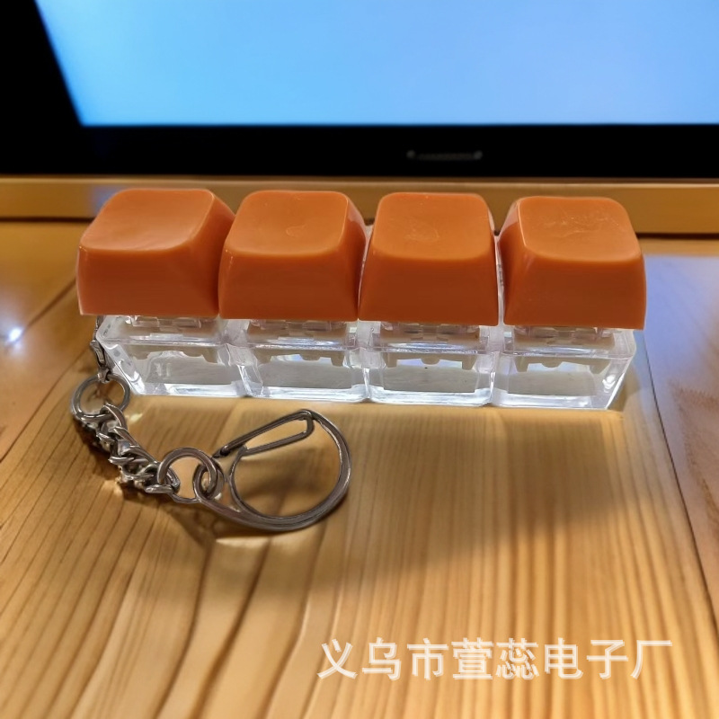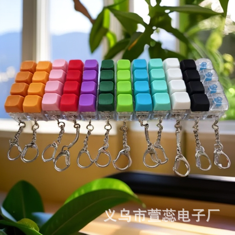 다양한 색상의 조명이 없는 4연속 감압 키보드 사운드 버튼 열쇠고리 책가방 펜던트 감압 장난감스토어 가기
