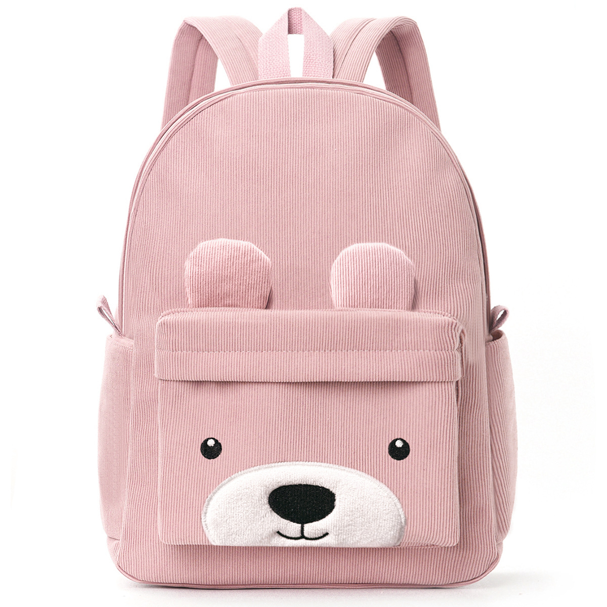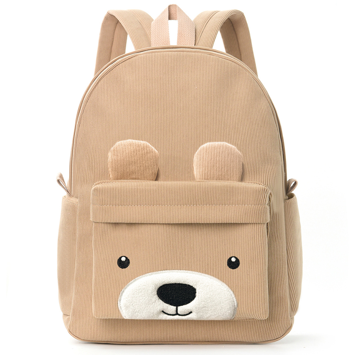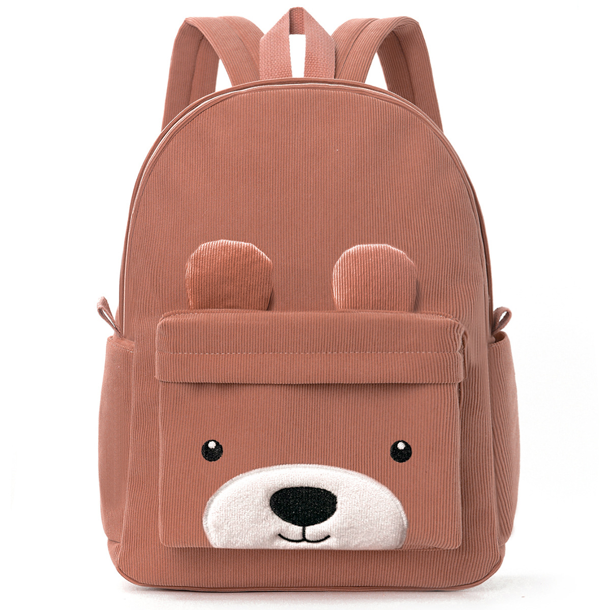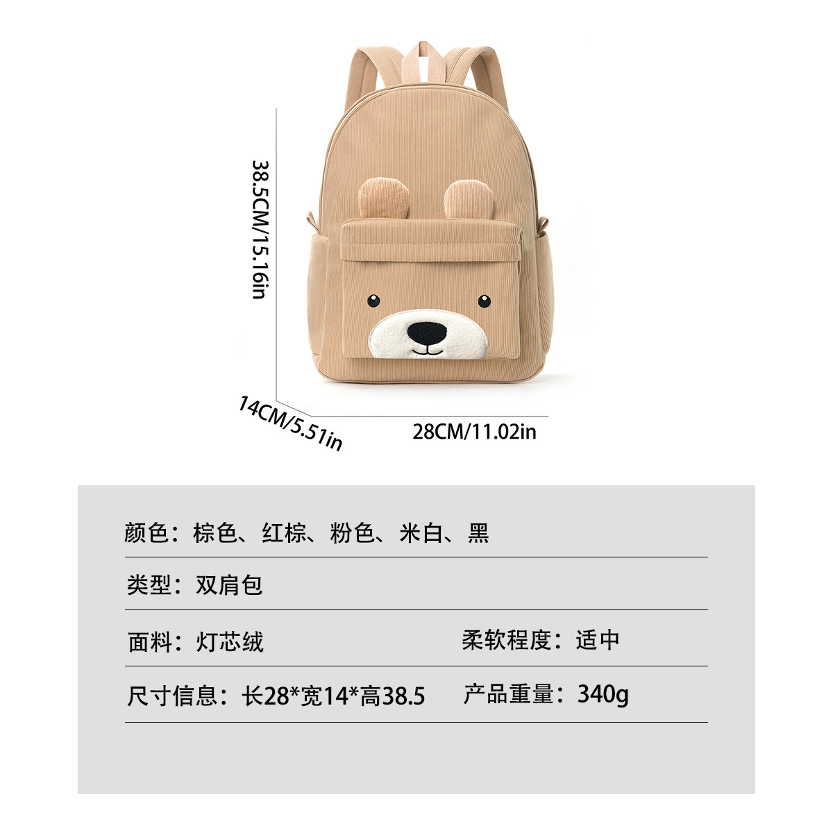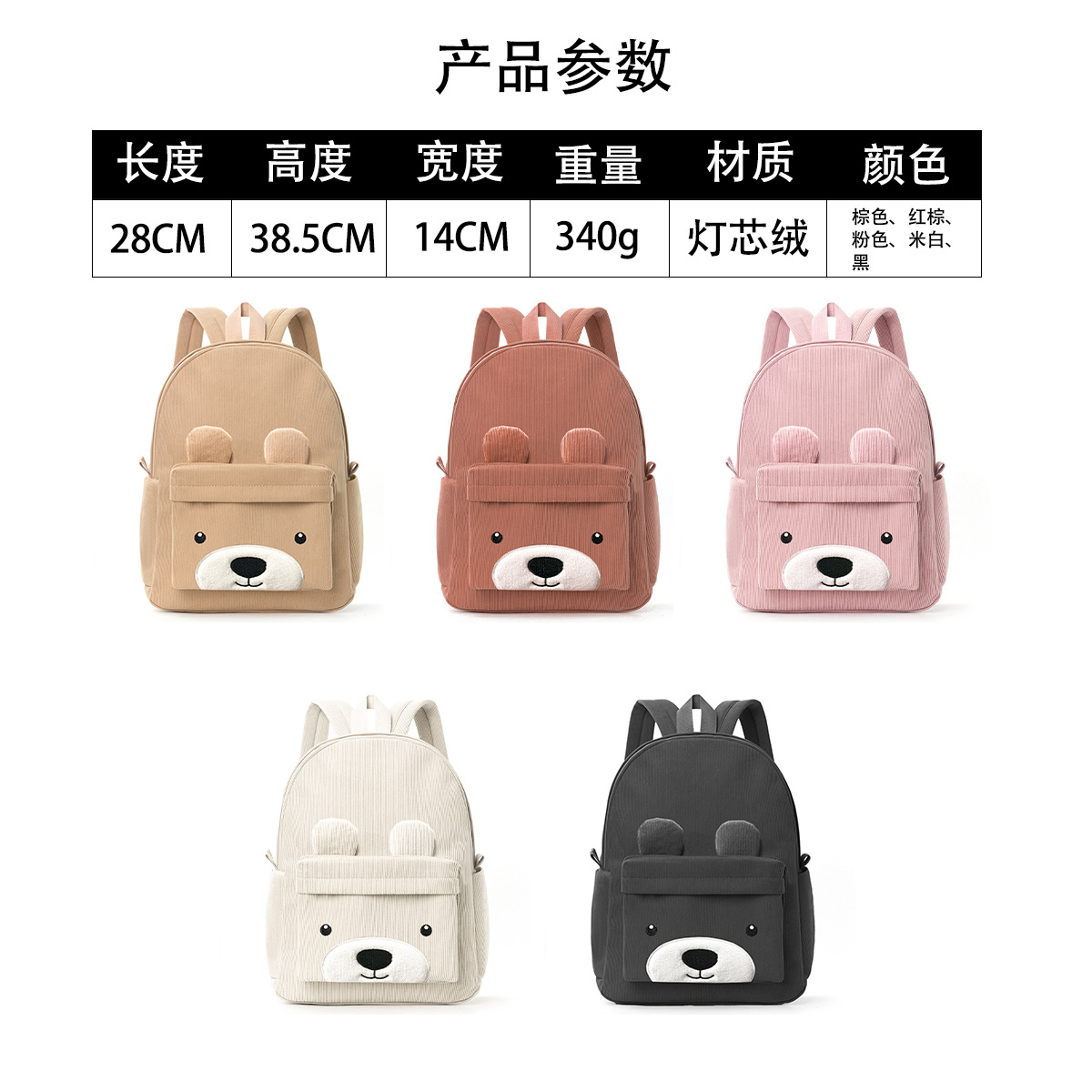 페이홍 크로스보더 코듀로이 아동 백팩 초등학생 책가방 패션 캐주얼 곰돌이 백팩 대용량 배낭
