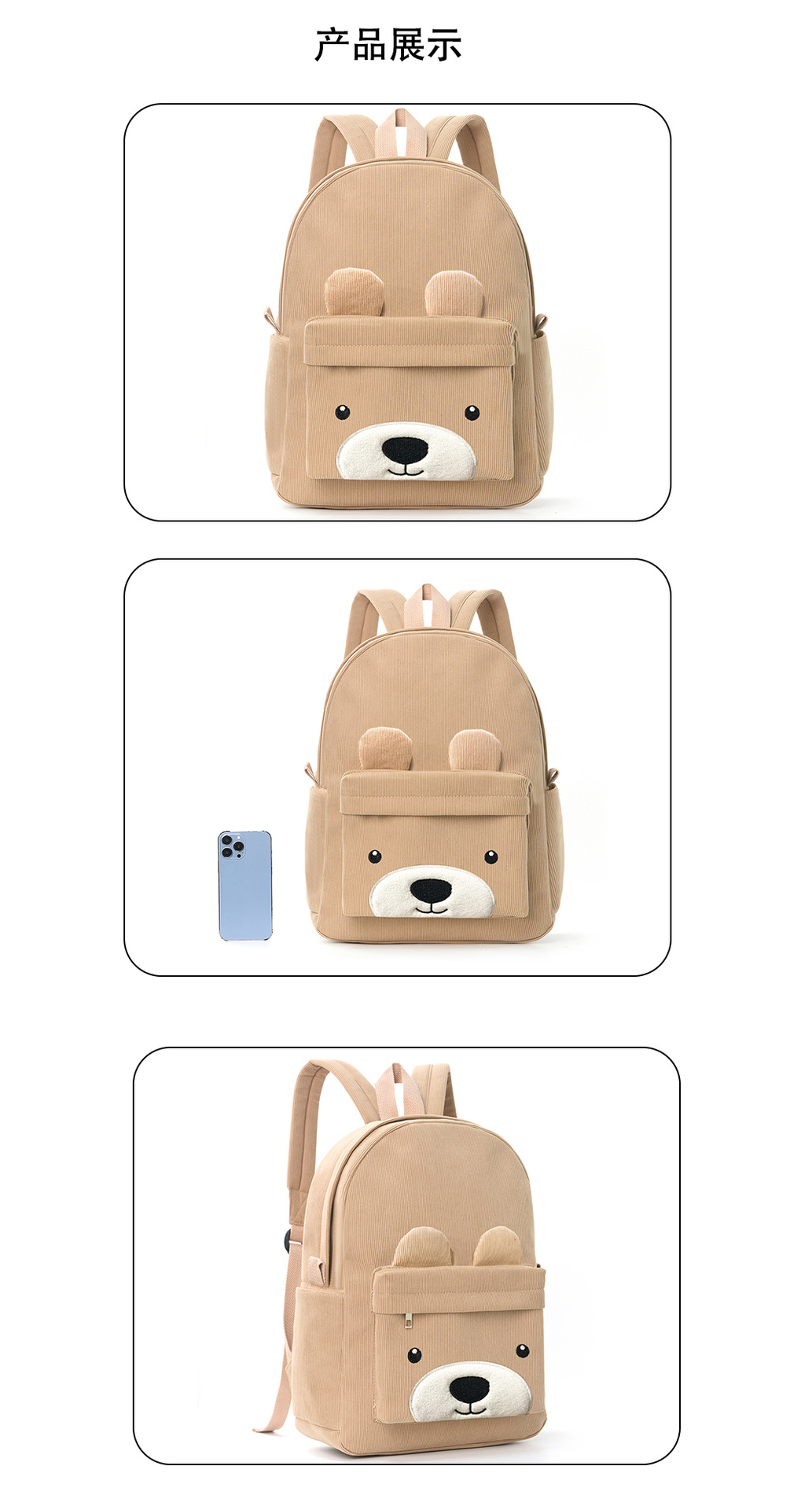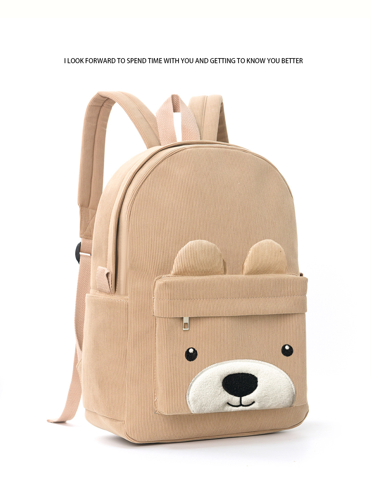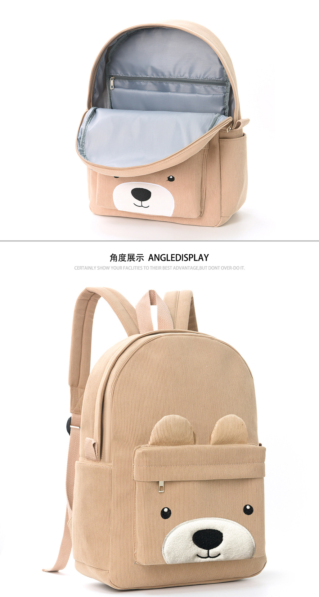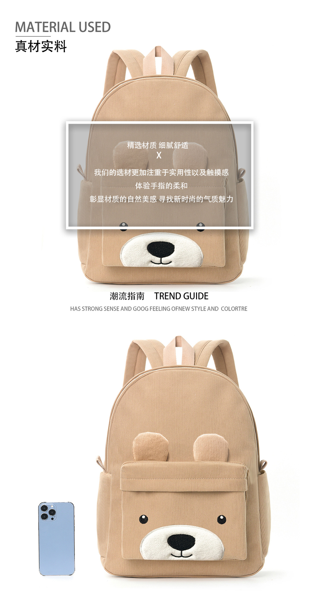 페이홍 크로스보더 코듀로이 아동 백팩 초등학생 책가방 패션 캐주얼 곰돌이 백팩 대용량 배낭스토어 가기