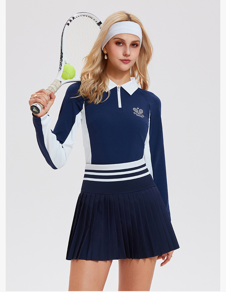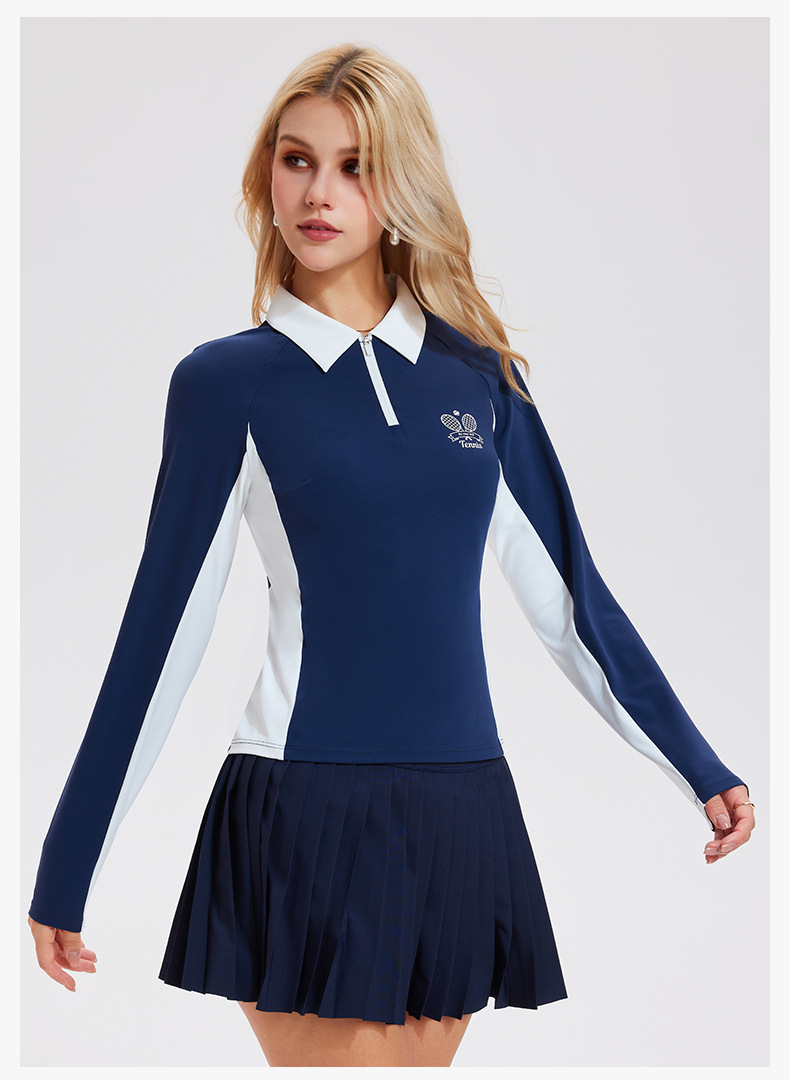 국경 간 새로운 스타일의 기모 스포츠 긴팔 여성용 옷깃 지퍼 골프 폴로 셔츠 야외 훈련 피트니스 테니스웨어