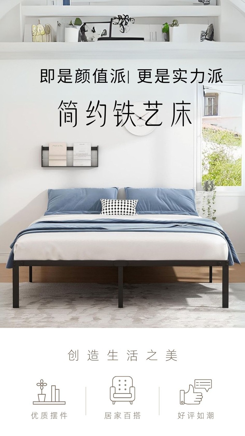 아마존 조명 철제 침대 간단한 침대 선반 임대실 2.4m 철제 침대 홈 마스터 침실 더블