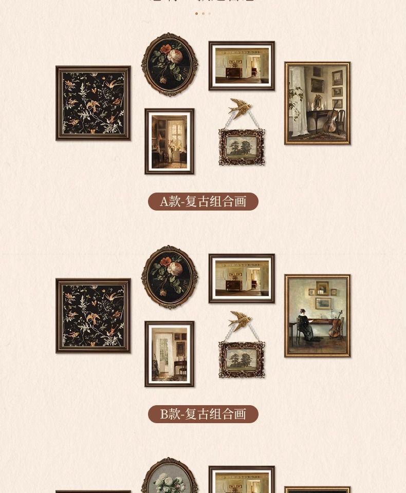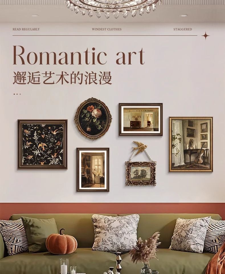 프랑스 스타일 교수형 그림, 미국 복고풍 장식 그림, 거실 소파 배경 벽, 중세 틈새 예술 레스토랑 조합 그림
