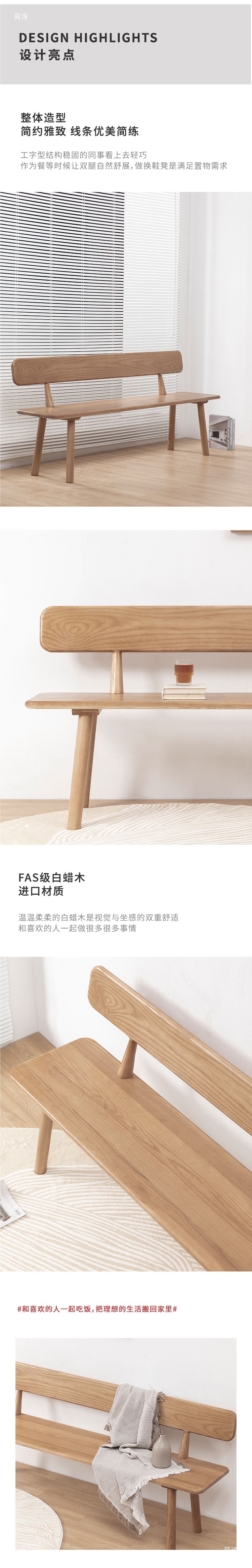 북유럽 단단한 나무 의자 식탁 벤치 등받이가 있는 긴 의자 홈 거실 애쉬 우드 벤치 긴 벤치 등받이
