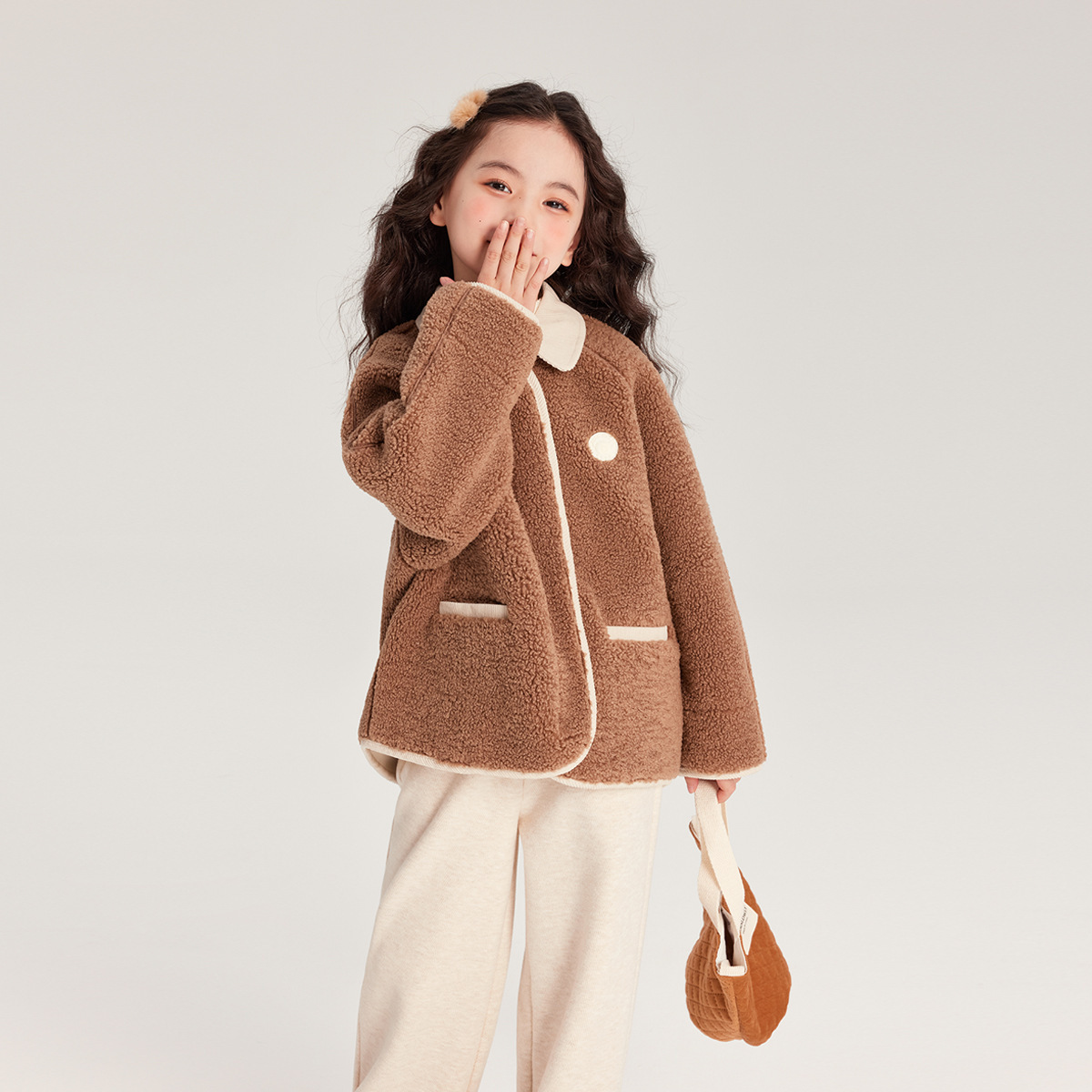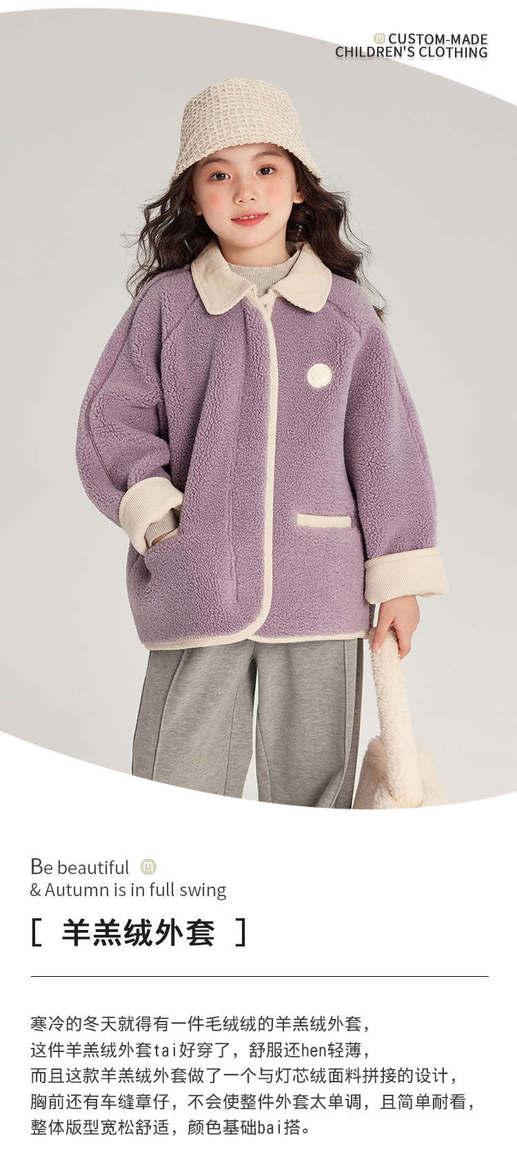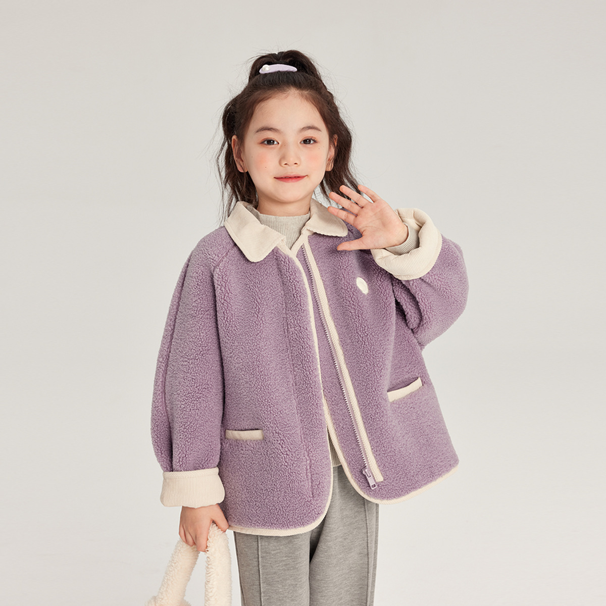Pudding Haru 봄 새 벨벳 스플라이스 재킷 2025 새로운 스타일 아기 소녀 폴라 플리스 재킷은 느슨하고 편안합니다.