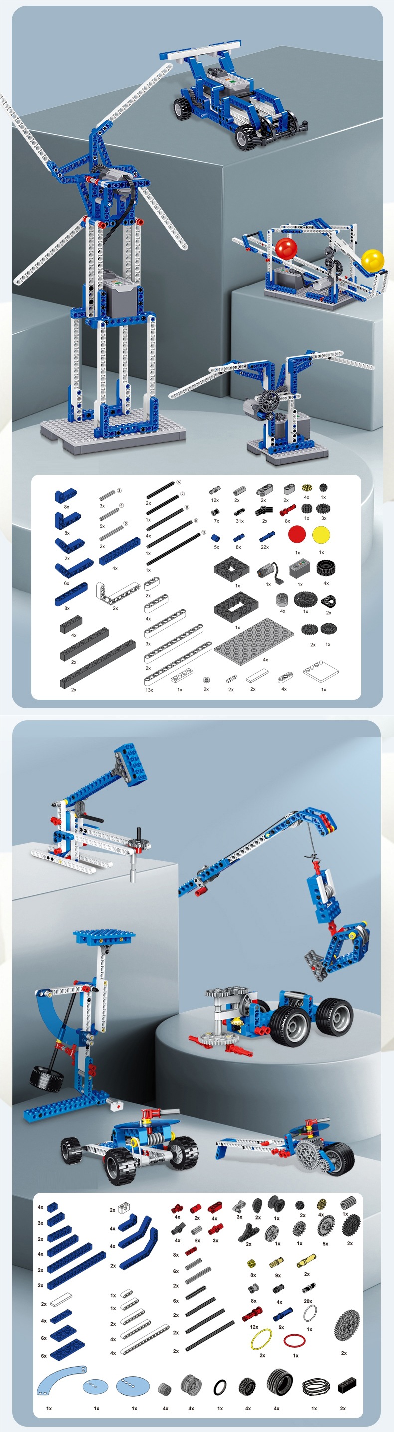 • 모터 4개, 입자 1749개(고급 풀 세트), 스타일링 튜토리얼 500개