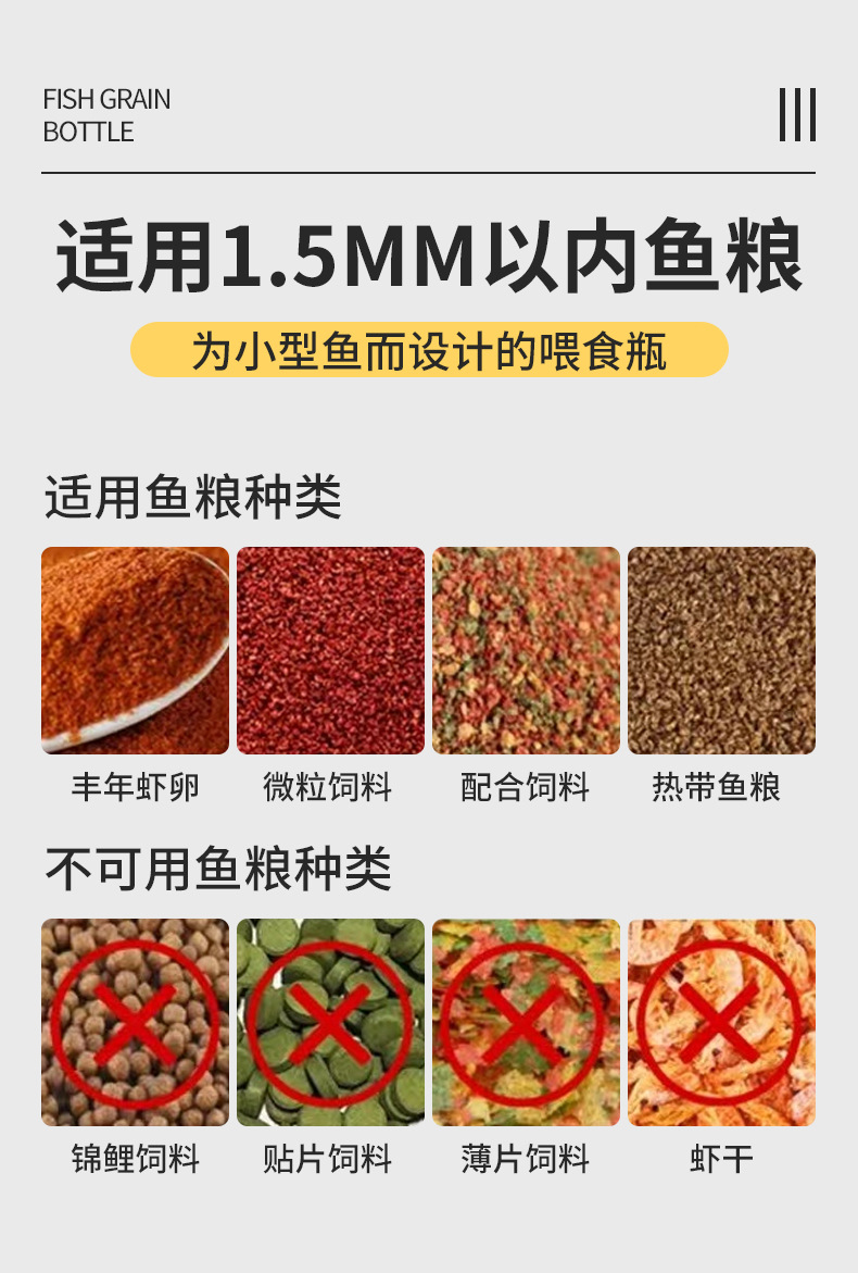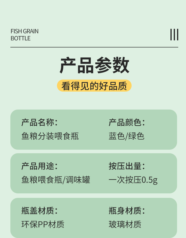 물고기 먹이병, 수조 먹이, 물고기 먹이 재포장 및 보관, 방습 정량 먹이통, 비자동 먹이통