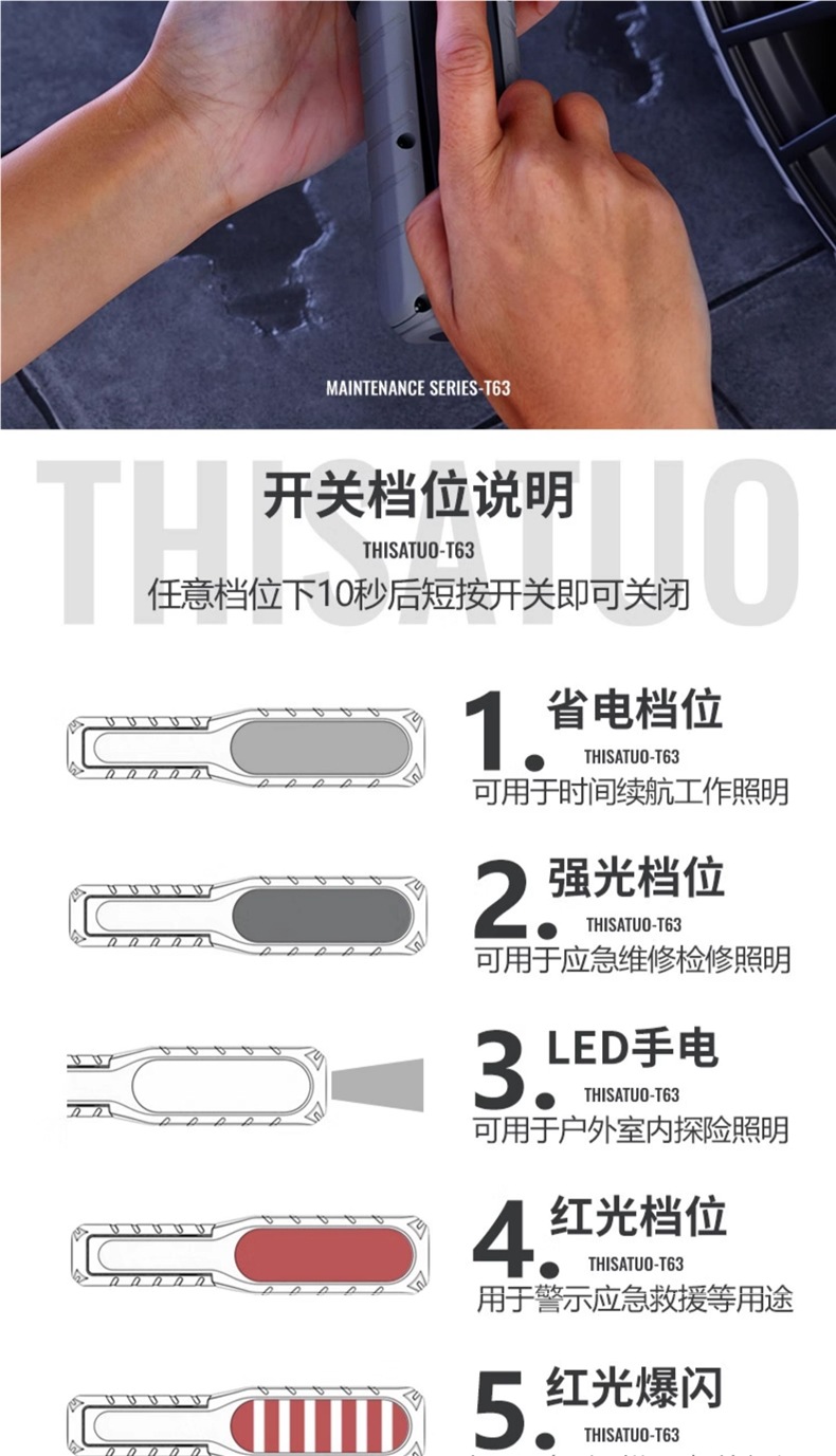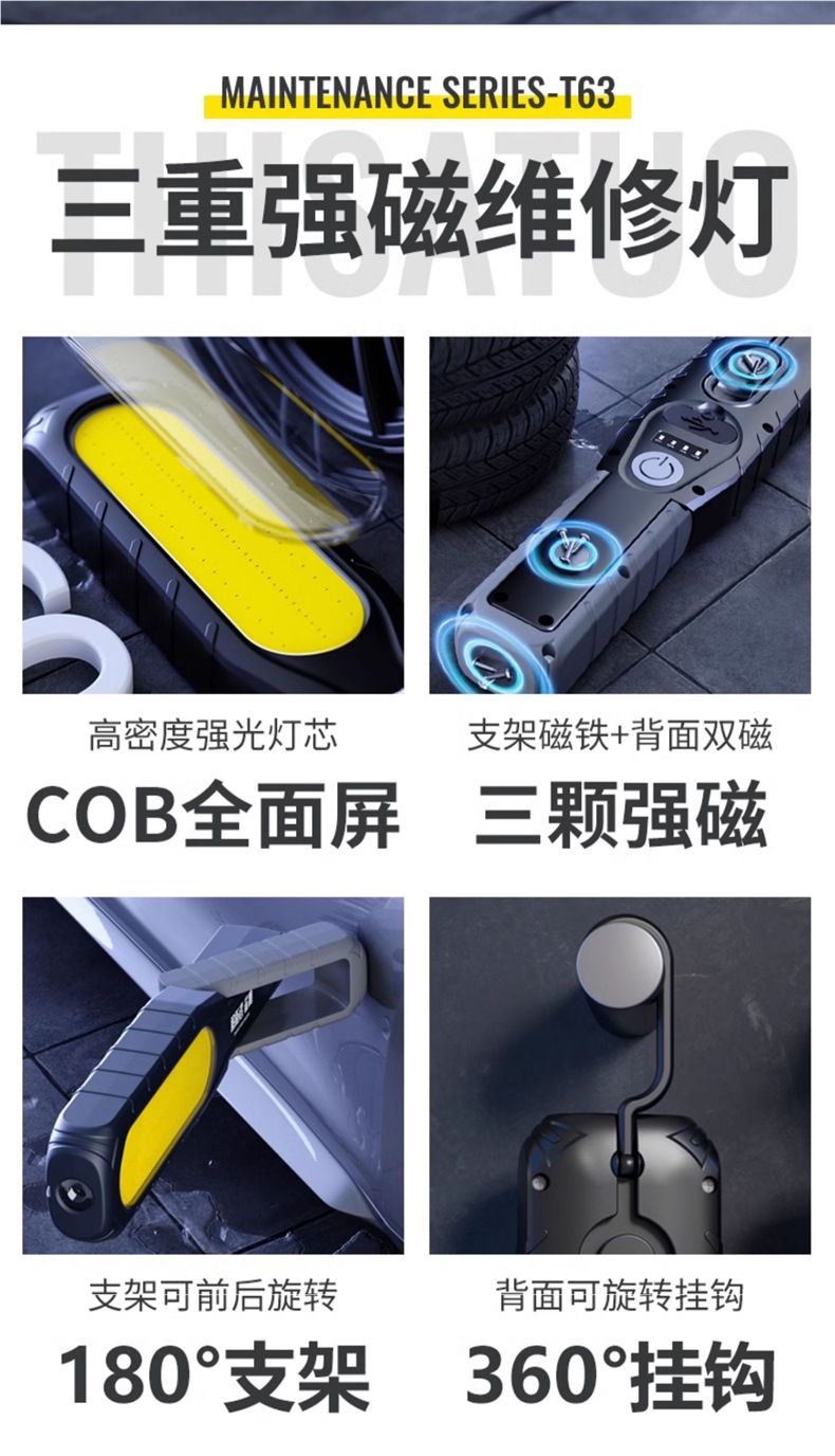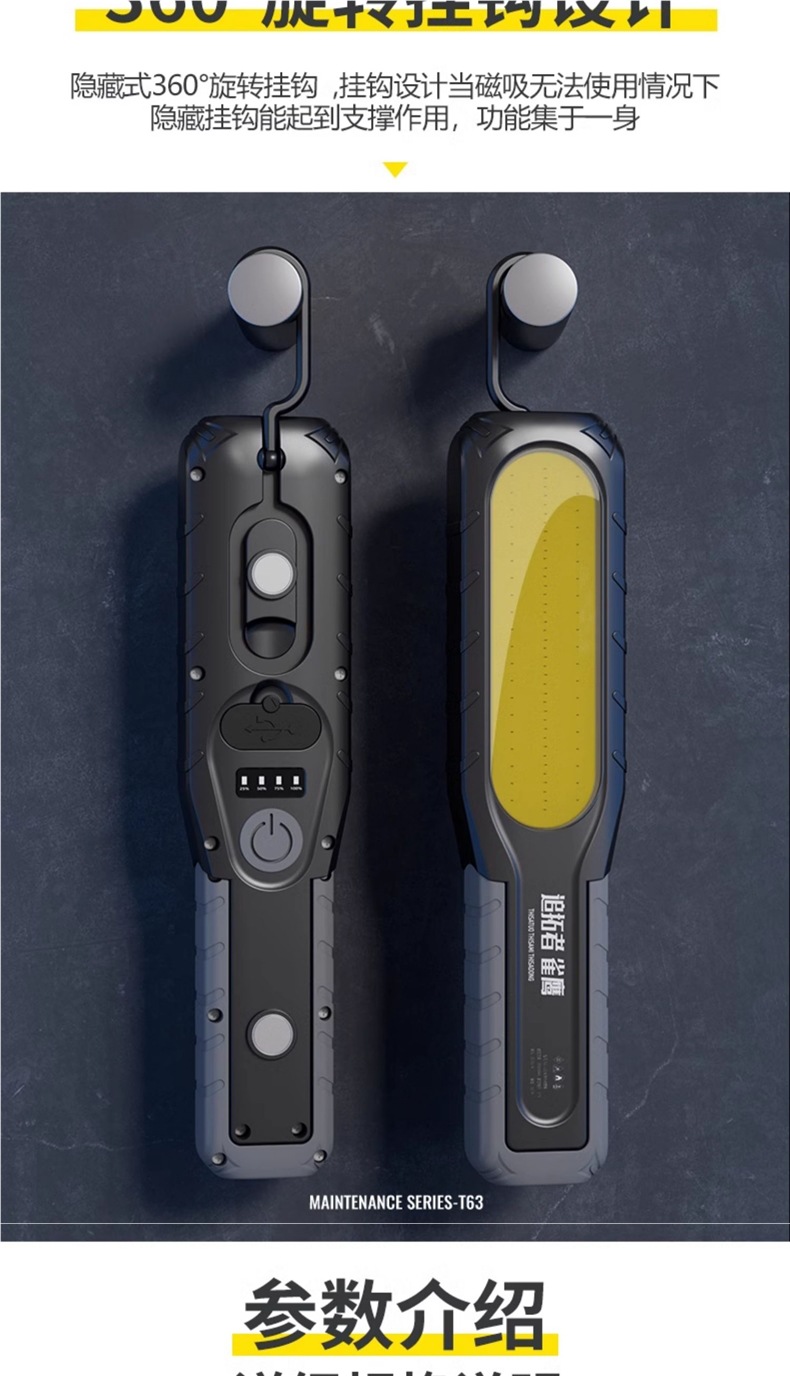 슈퍼 밝은 작업 조명 자동 수리 및 유지 보수 조명 LED 자기 흡입 강한 빛 자동차 수리 조명 손전등 충전스토어 가기