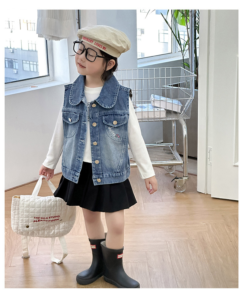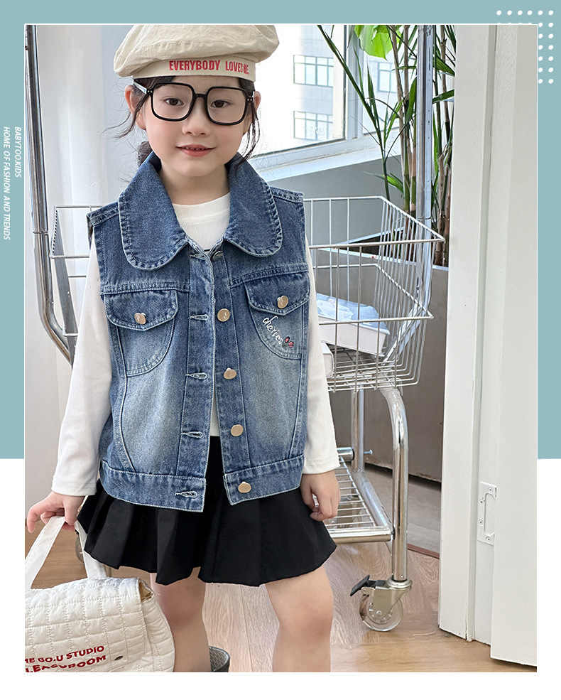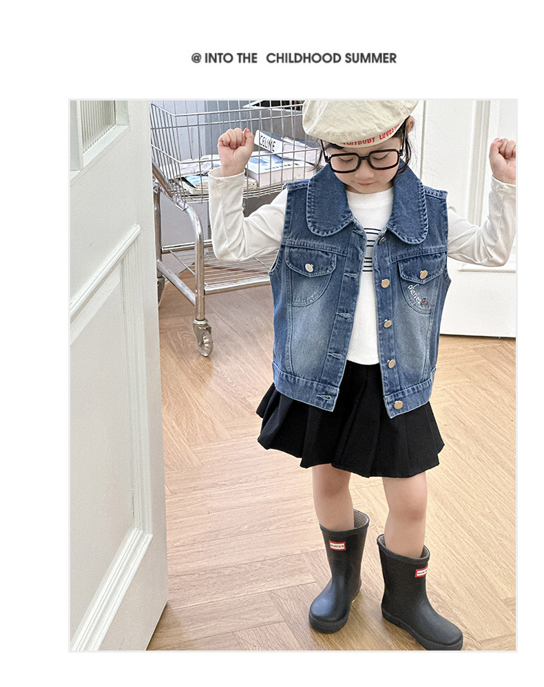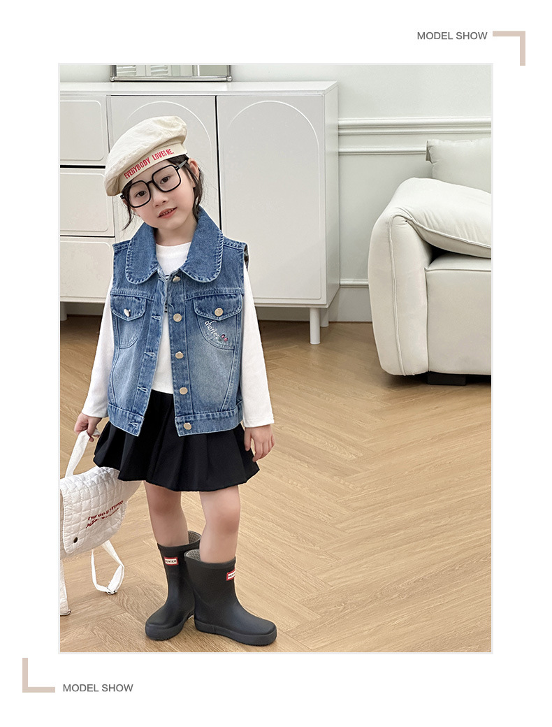 여자 데님 조끼 봄, 가을 2025 새로운 스타일 가을 겉옷 어린이 조끼 아기 유행 가을 재킷스토어 가기