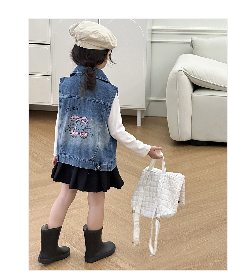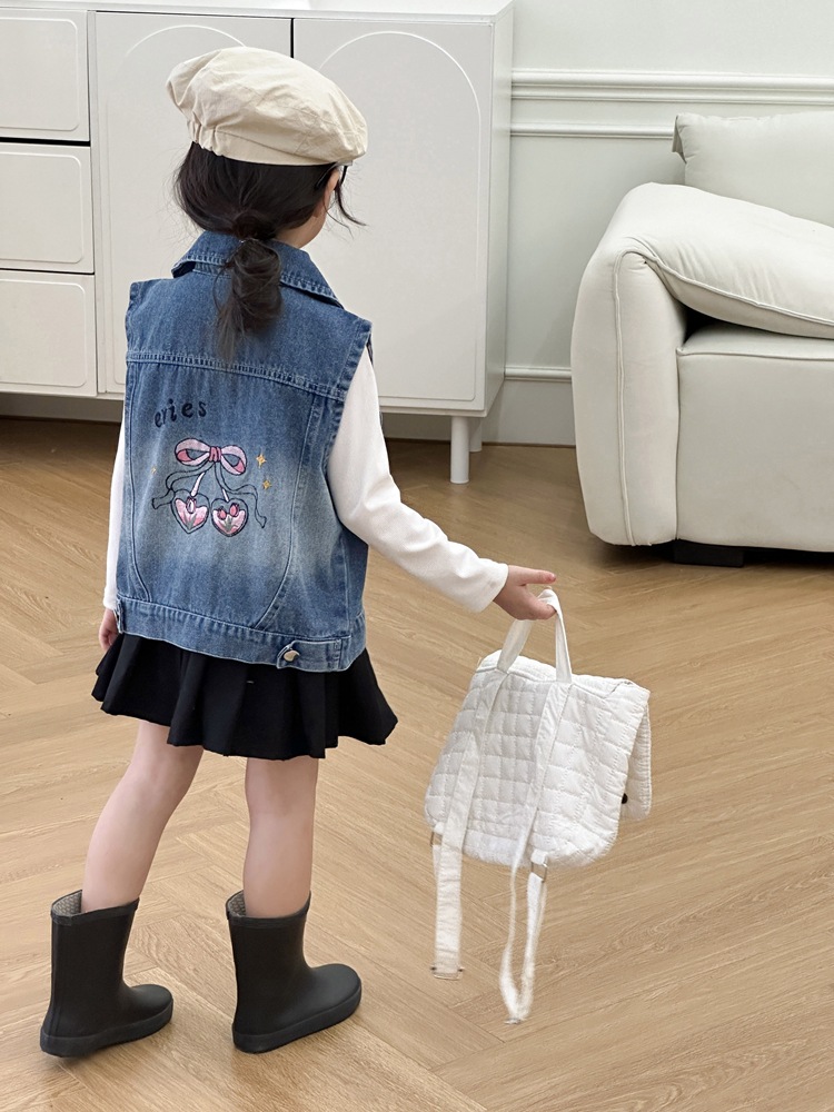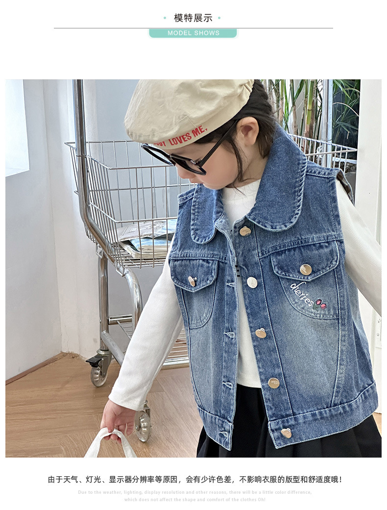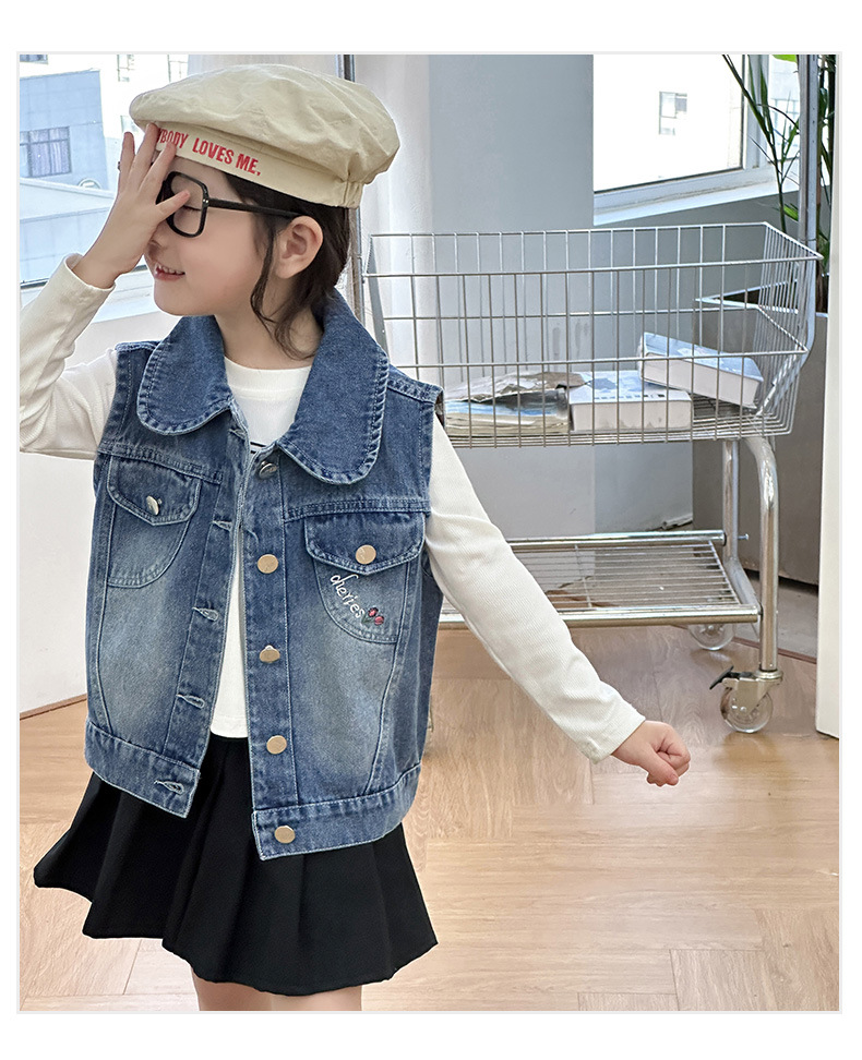여자 데님 조끼 봄, 가을 2025 새로운 스타일 가을 겉옷 어린이 조끼 아기 유행 가을 재킷