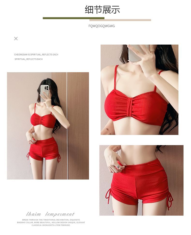 여성용 수영복, 소녀용 보수적인 3피스 수영복, 한국어 버전, 작은 가슴 푸시업, 새로운 스타일, 2025 온천 새로운 수영복스토어 가기