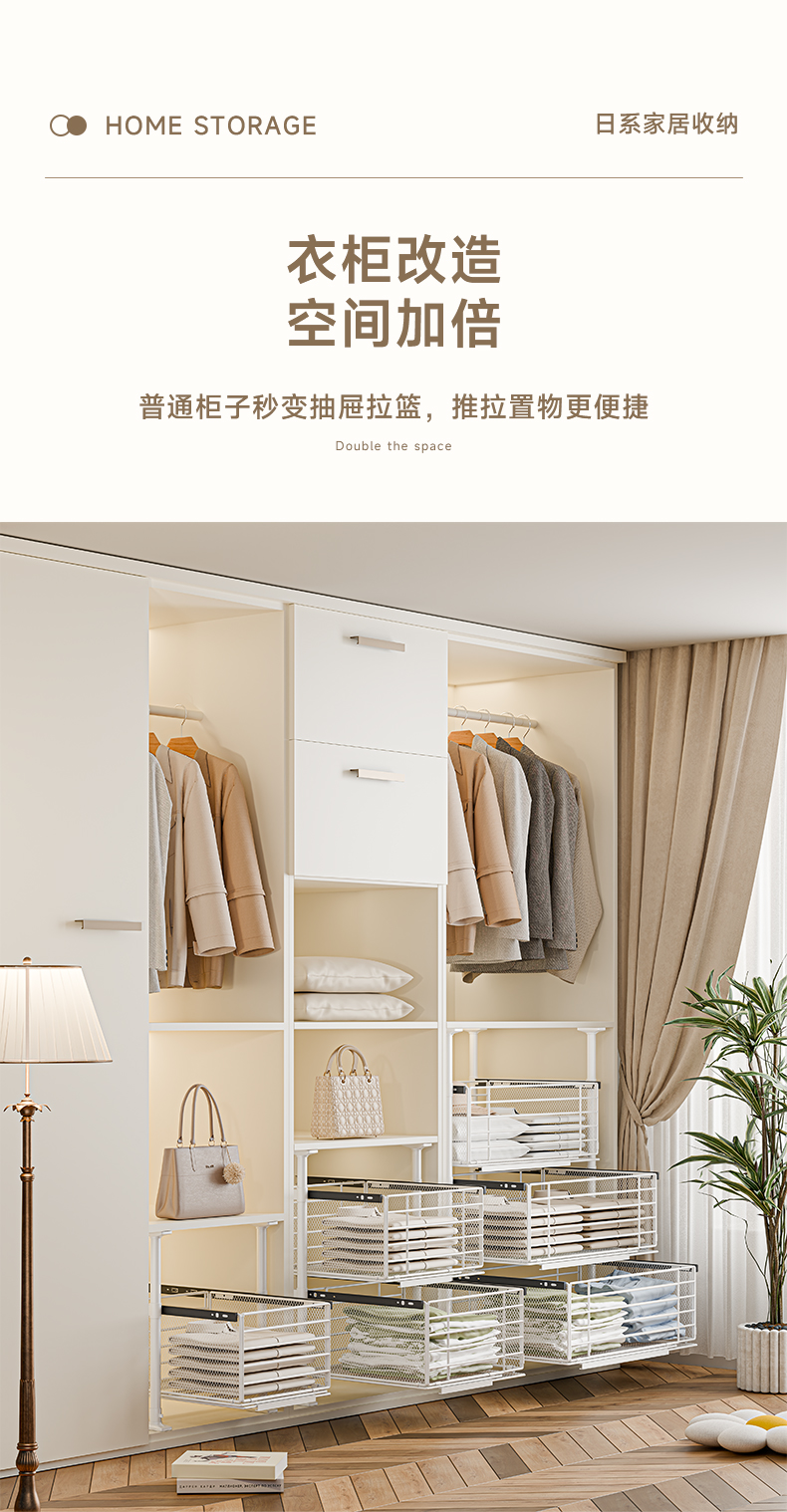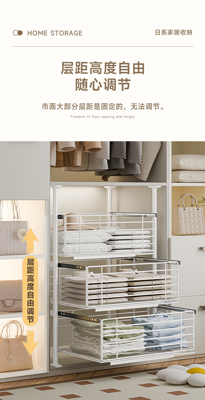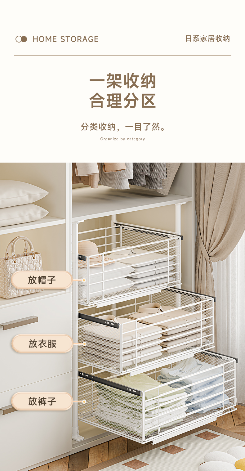옷장 바구니 서랍형 계층형 수납 푸시풀 트랙 펀치 없는 풀아웃 바지걸이 텔레스코픽 다층 개조 내장형