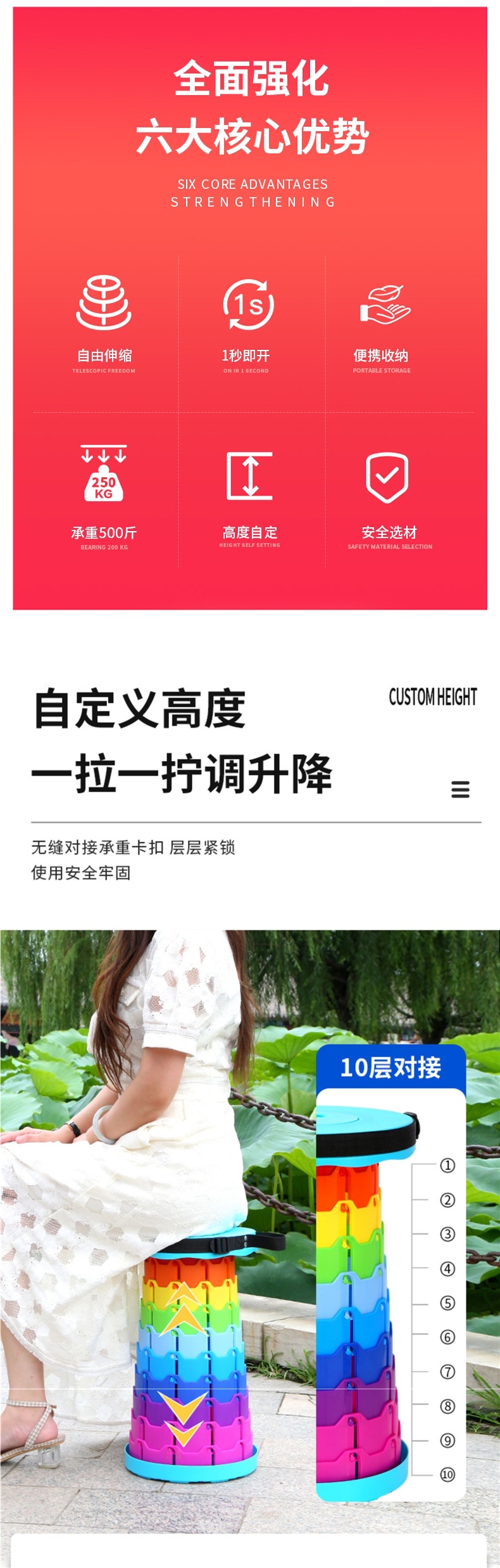 인터넷 연예인 수축 접이식 의자 조정 가능한 텔레스코픽 휴대용 야외 여행 낚시 의자 홈 플라스틱 작은 의자스토어 가기