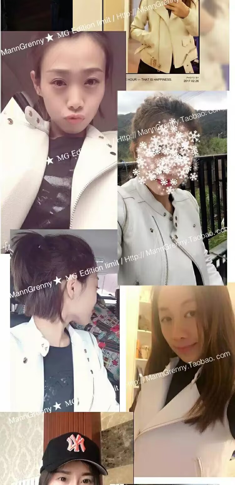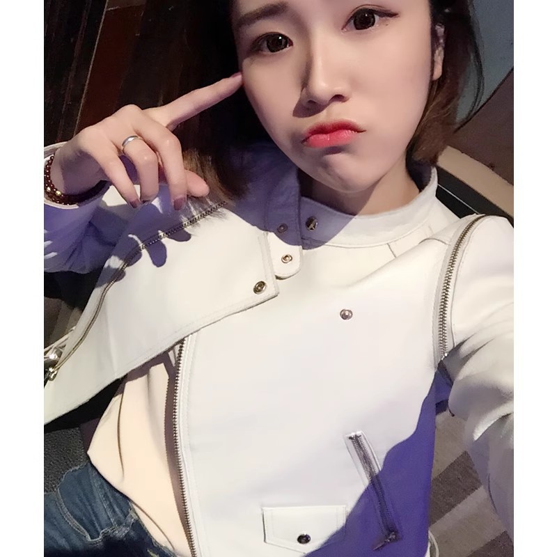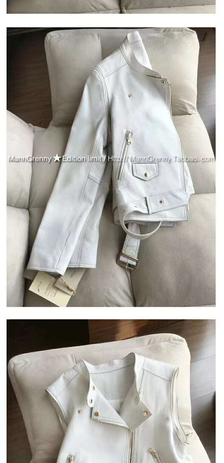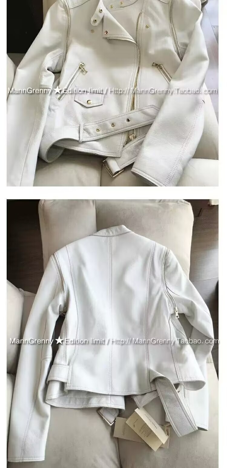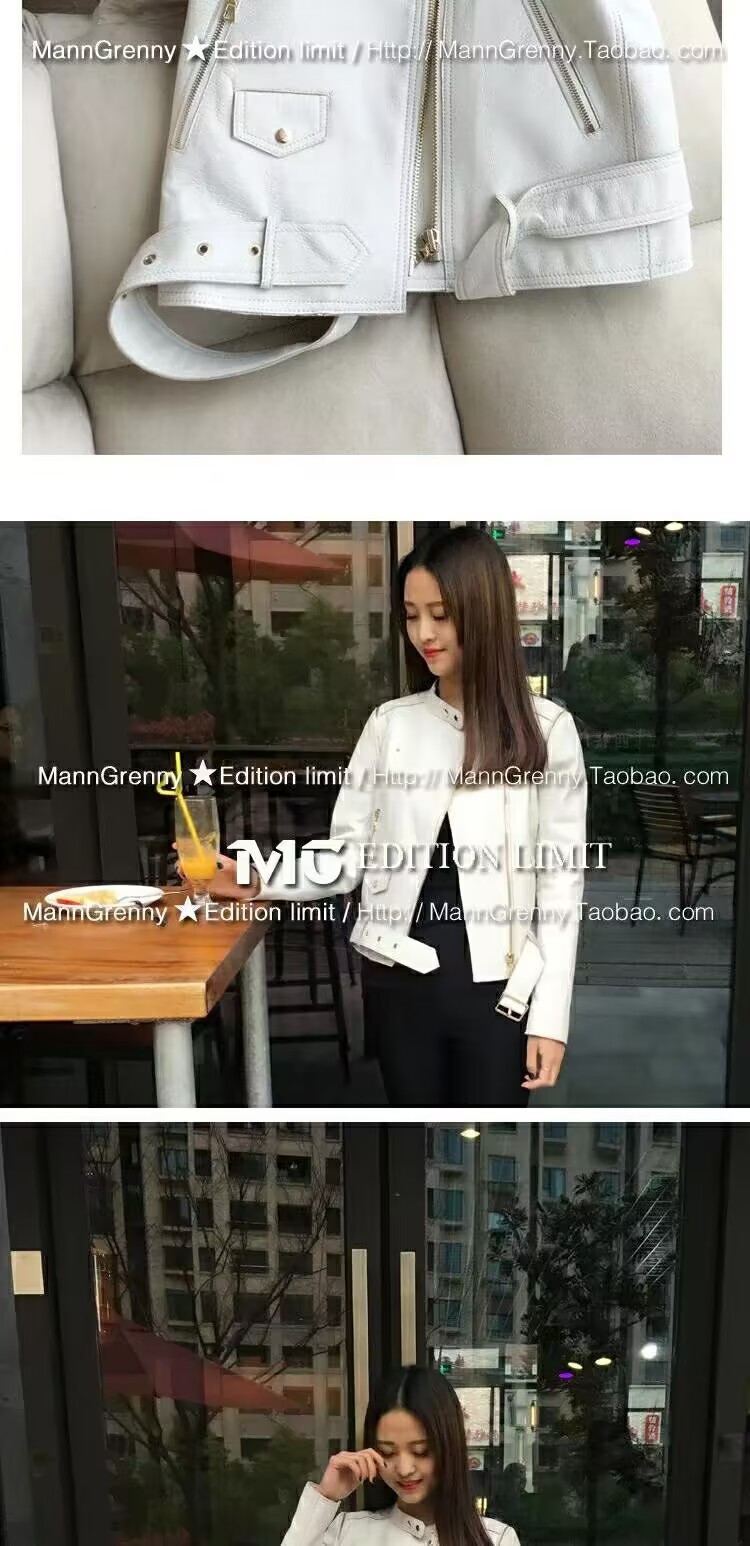MG 하이엔드 스타 같은 스타일 101.15kg 양가죽 자켓 정품 가죽 자켓 여성 짧은 흰색 오토바이 자켓스토어 가기