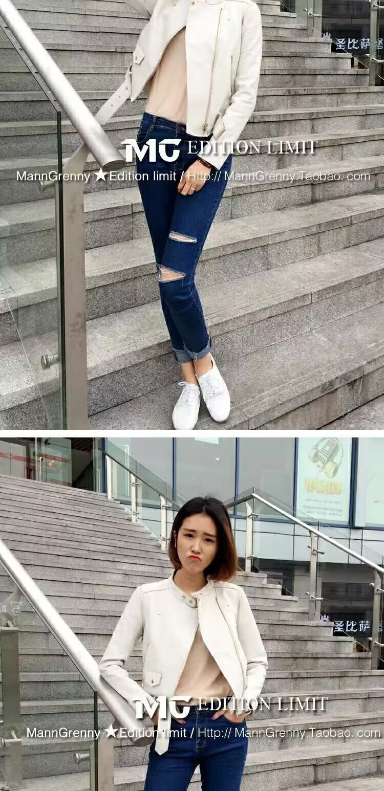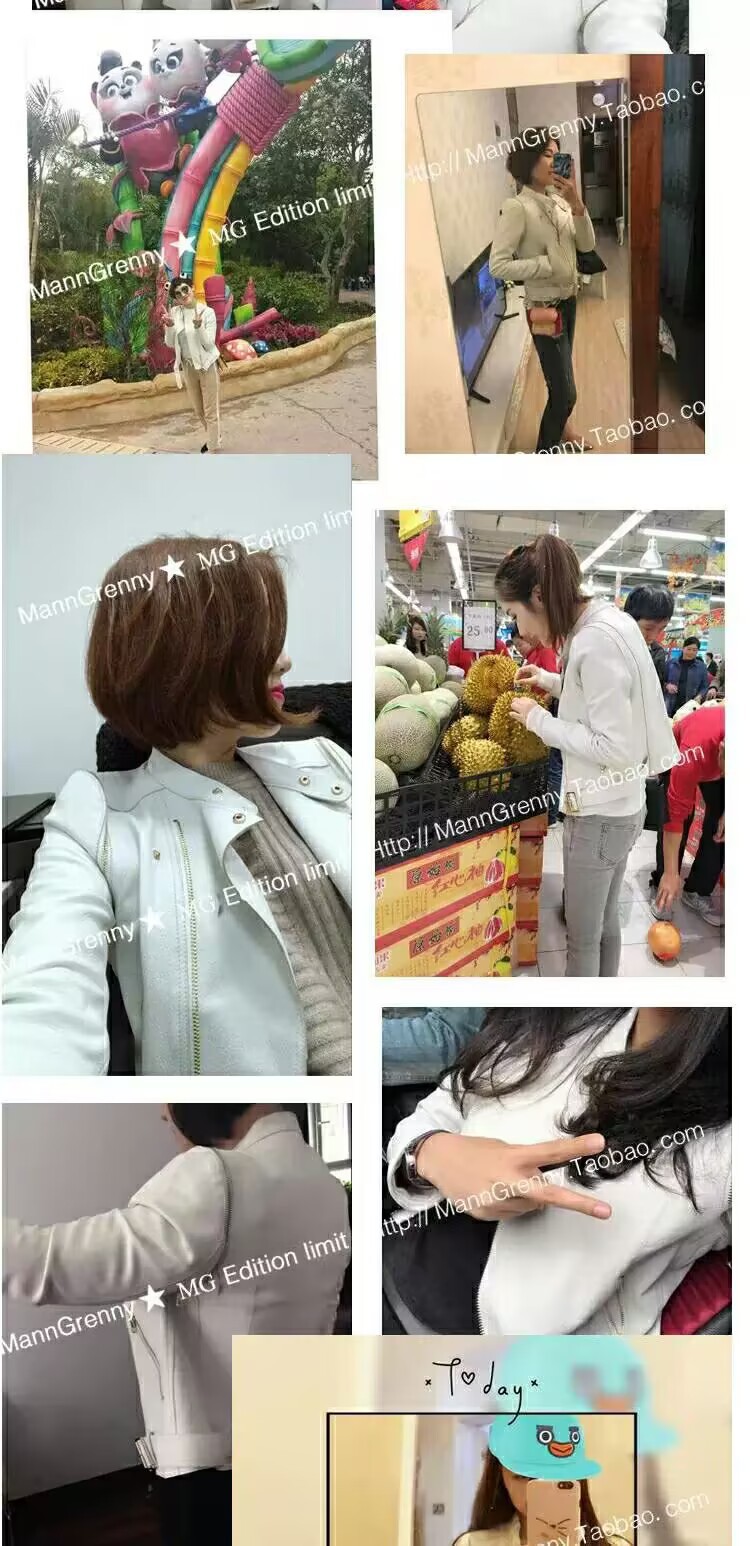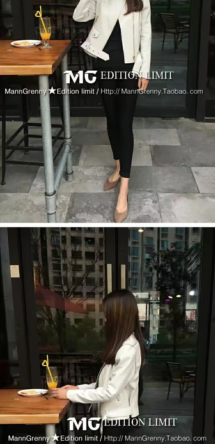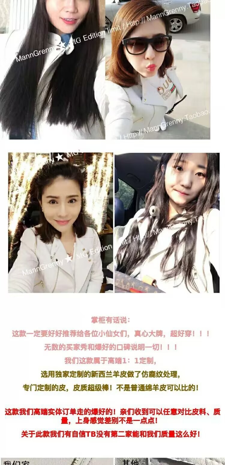 MG 하이엔드 스타 같은 스타일 101.15kg 양가죽 자켓 정품 가죽 자켓 여성 짧은 흰색 오토바이 자켓스토어 가기
